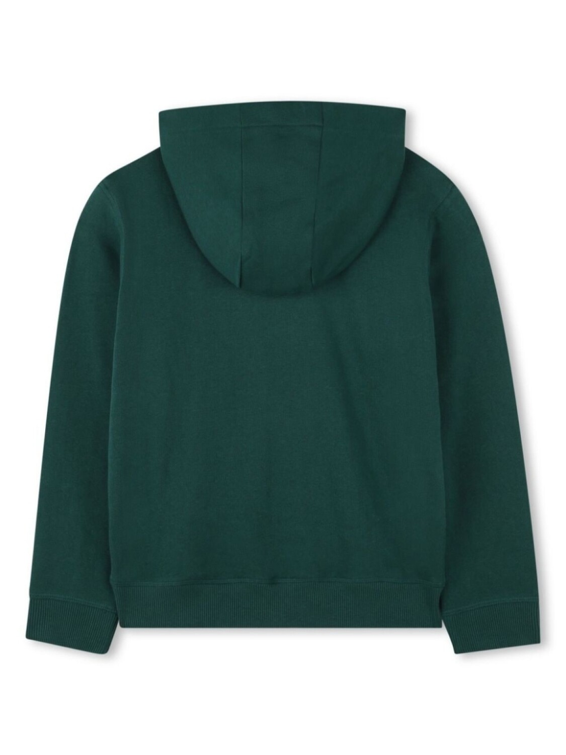 Джерси из хлопковой смеси лесного зеленого цвета, застежка-молния спереди, классический капюшон, длинные рукава, логотип на груди, два передних кармана-кенгуру, ребристые манжеты и подол