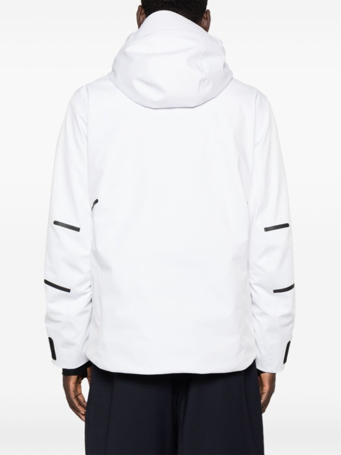 Подробнее о товаре: • белый • плотный внешний материал • водонепроницаемый материал • ветронепродуваемая модель • интегрированный спасательный рефлектор RECCO® • дутый материал • знаковый наполнитель PrimaLoft® • проклеенные швы • двусторонняя молния спереди • застежка на липучке спереди • затягивающийся на шнурок капюшон • воротник-труба • логотип спереди • длинные рукава • нашивка с логотипом на рукаве • карман с молнией на рукаве • манжеты на липучках • многослойные манжеты с прорезями для больших пальцев • два нагрудных кармана на молнии • два передних кармана с клапанами • два кармана на молнии по бокам • внутренний карман на молнии • внутренний накладной карман • нижняя юбка • стеганая подкладка • прямой подол