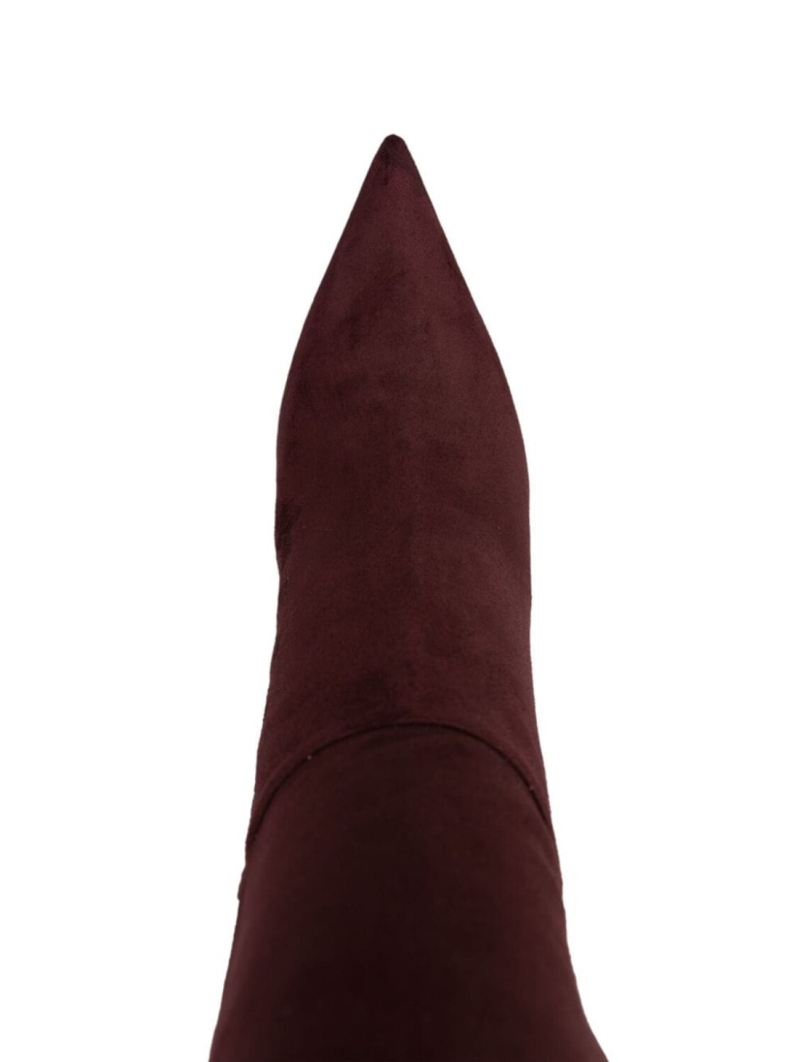 Бордовый, замша из телячьей кожи, металлический логотип, заостренный носок, модель без застежки, кожаная стелька с логотипом, высокий каблук и кожаная подошва.