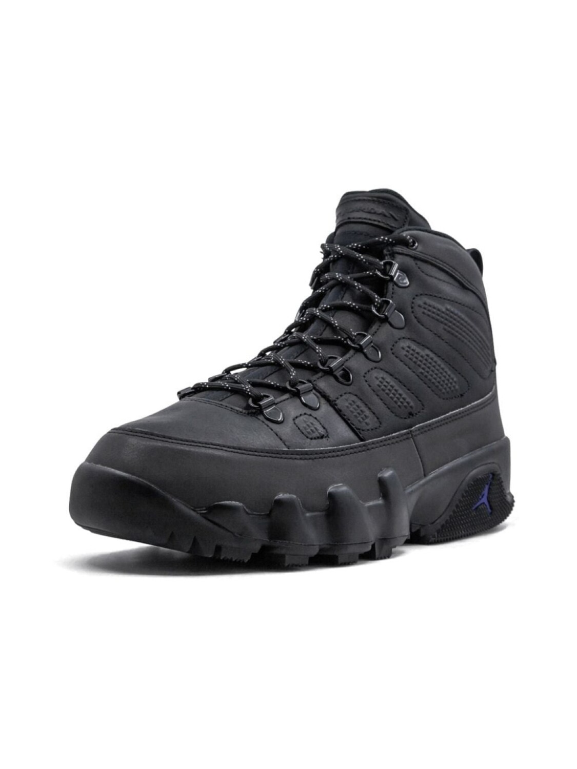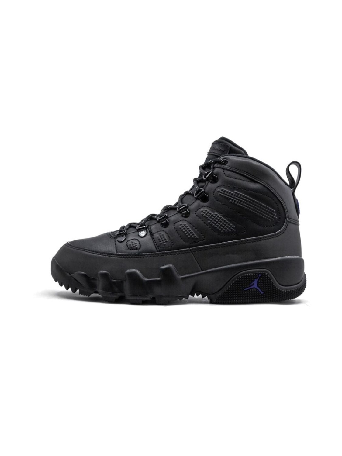 Кроссовки 'Air Jordan 9 Retro Boot NRG' от Jordan. Закругленный носок, шнуровка спереди, язычок с логотипом, фирменная стелька, уплотненная щиколотка, петля для подтягивания сзади, фирменный дизайн каблука и резиновая подошва.