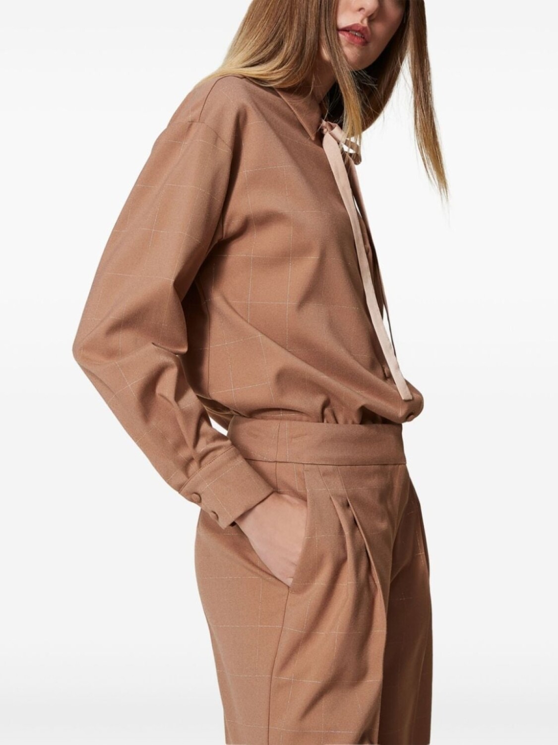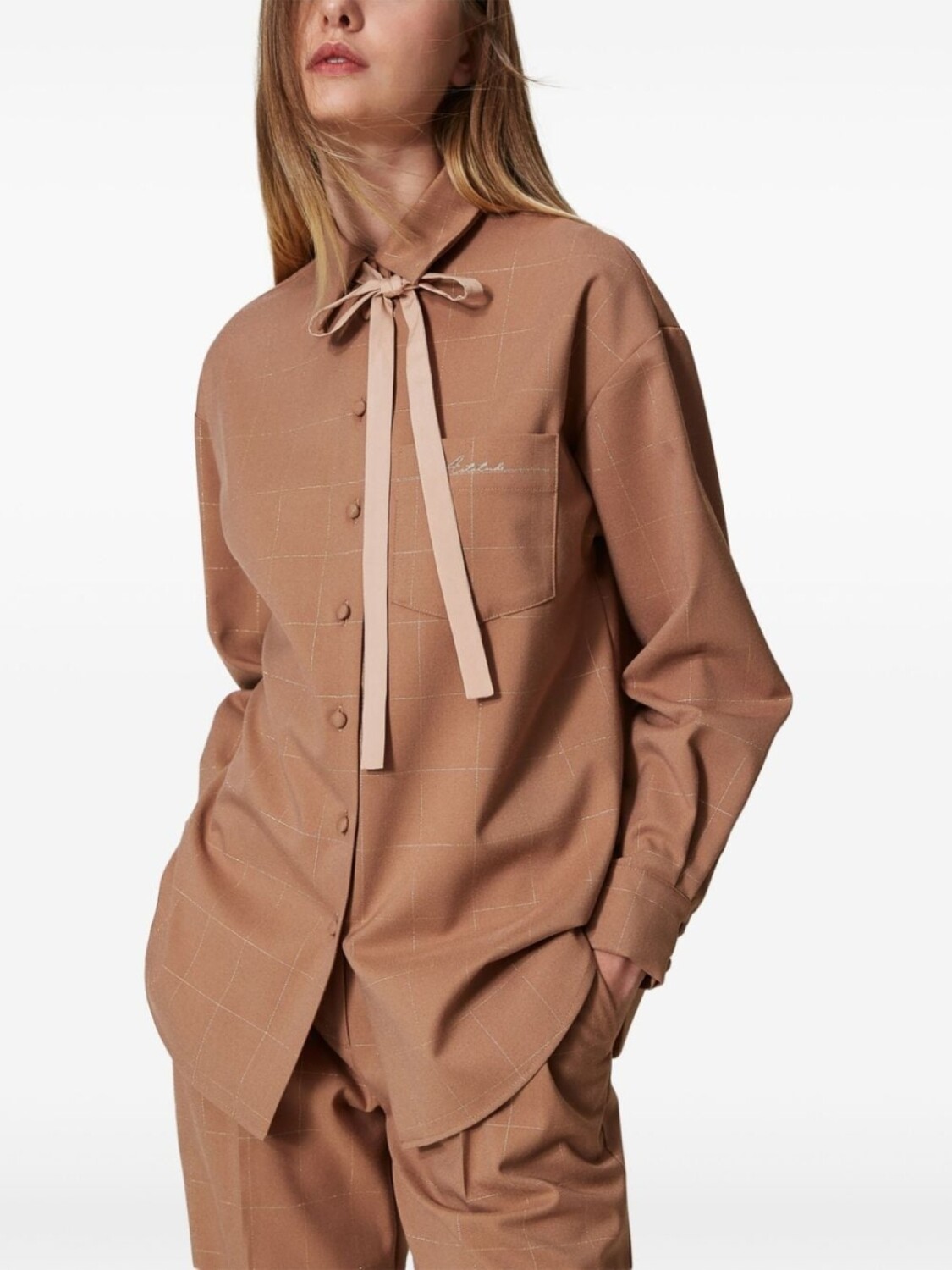 Рубашка TWINSET в клетку с люрексом, коричневый