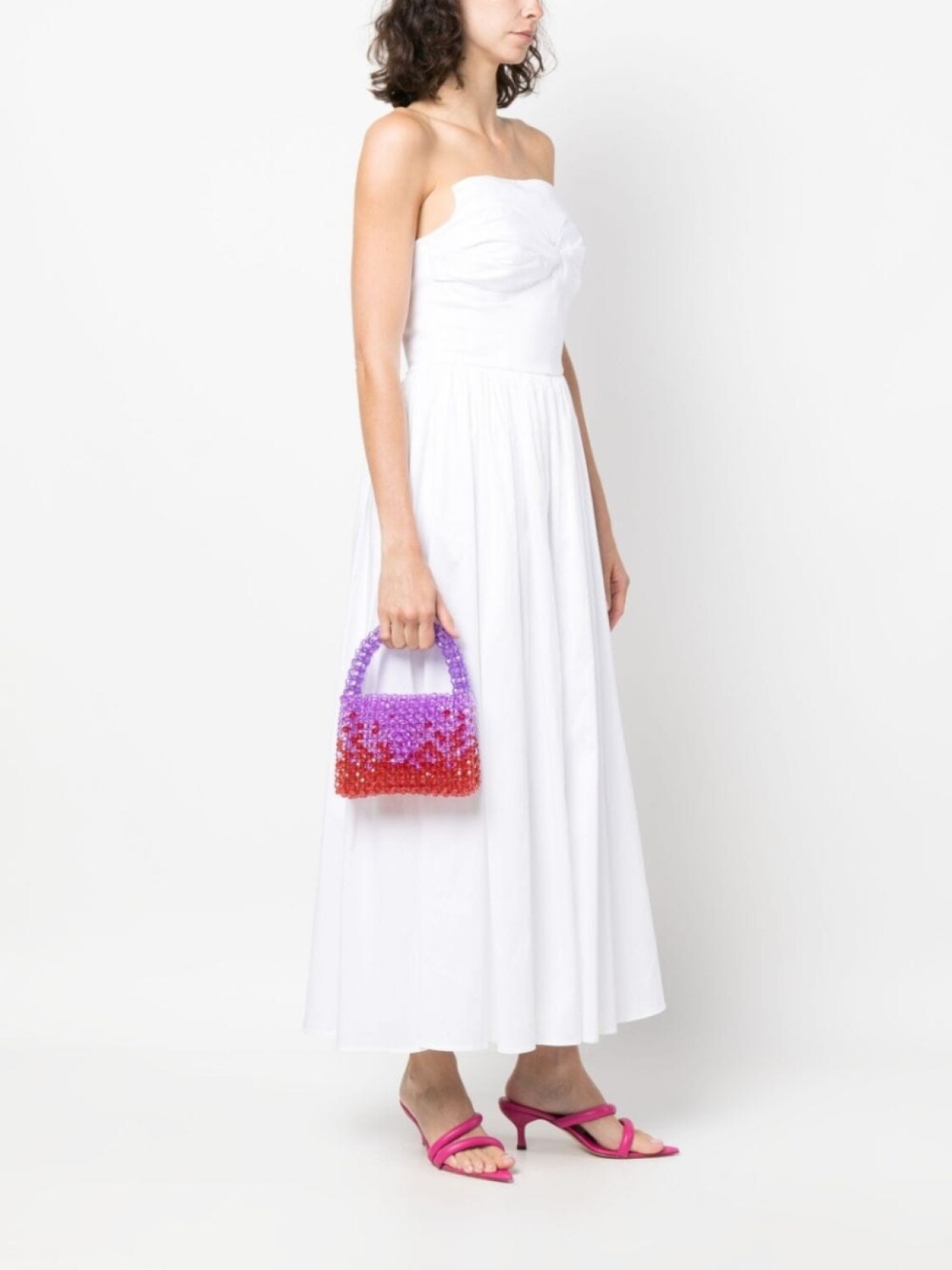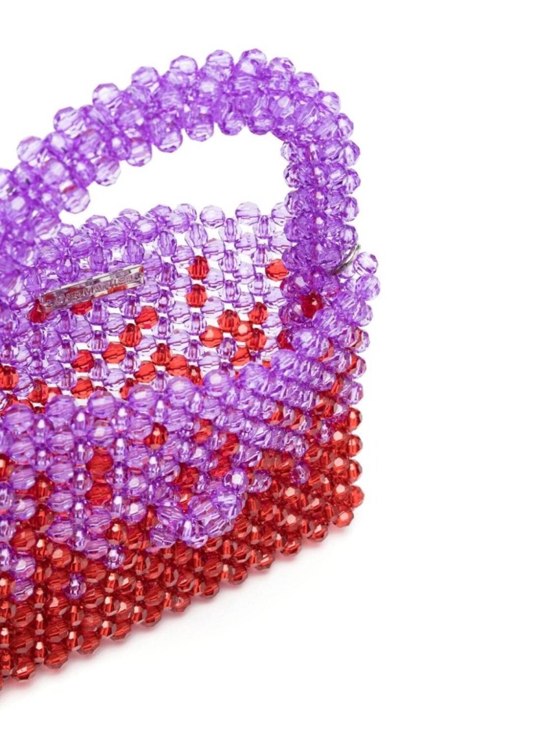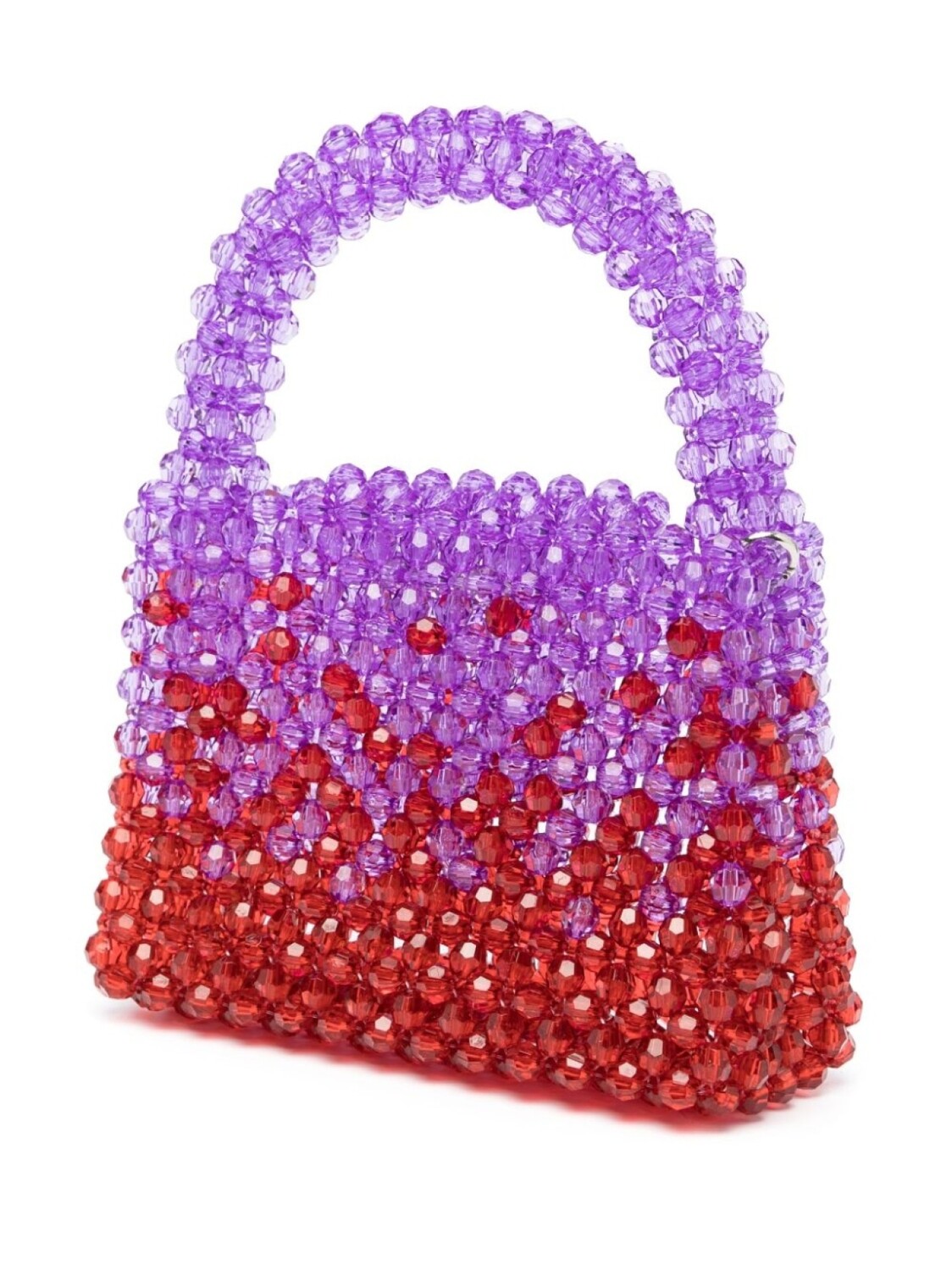 Сочетание двух оттенков, декор из бисера, закругленная верхняя ручка и ремень на плечо.