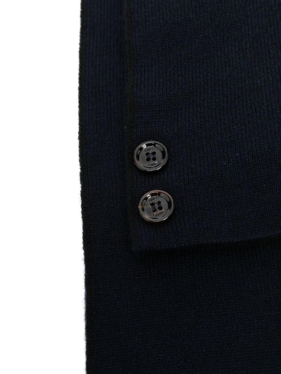 Темно-синий, кашемир, декоративные пуговицы, контрастная отделка и обработанные края.