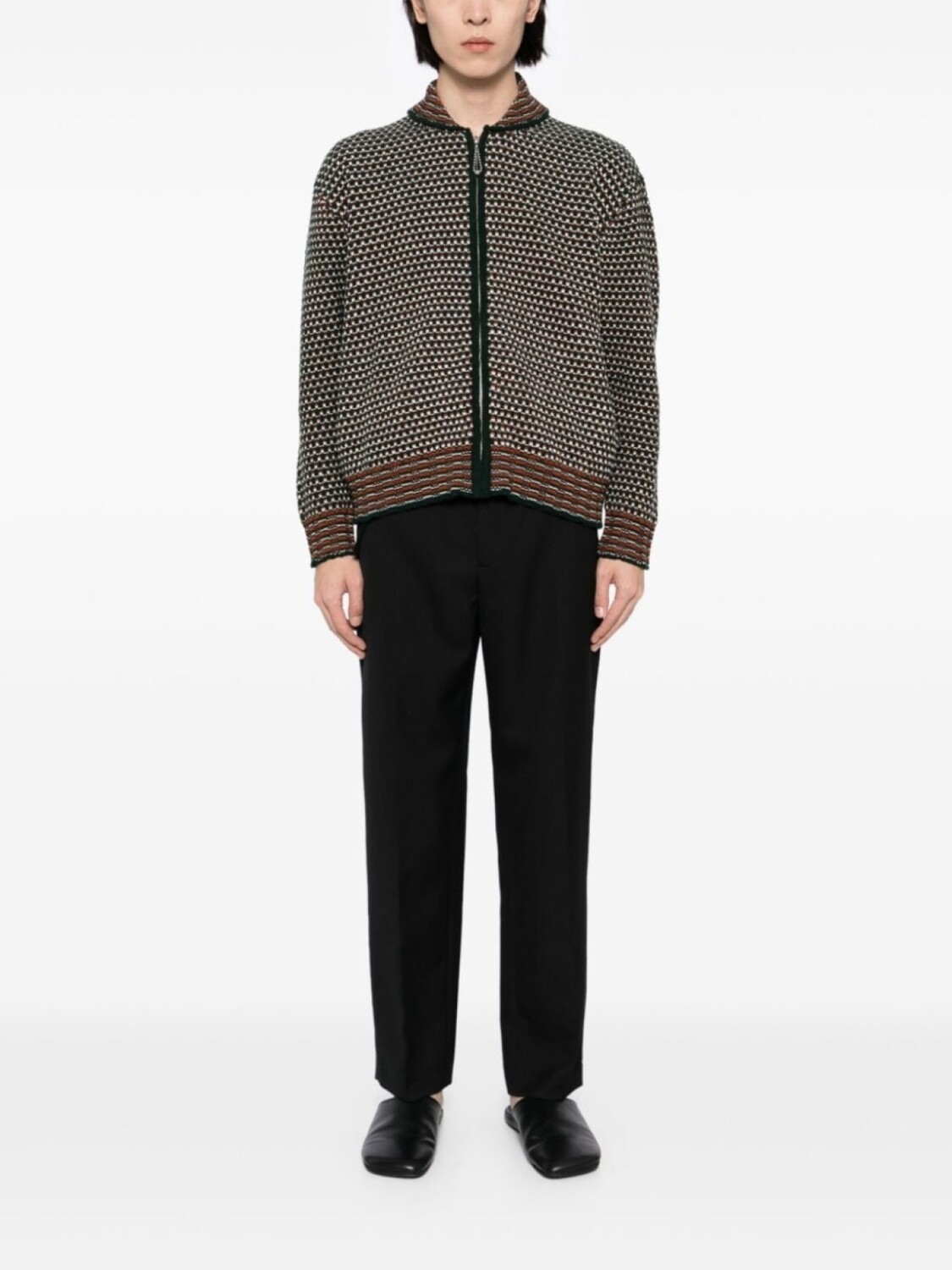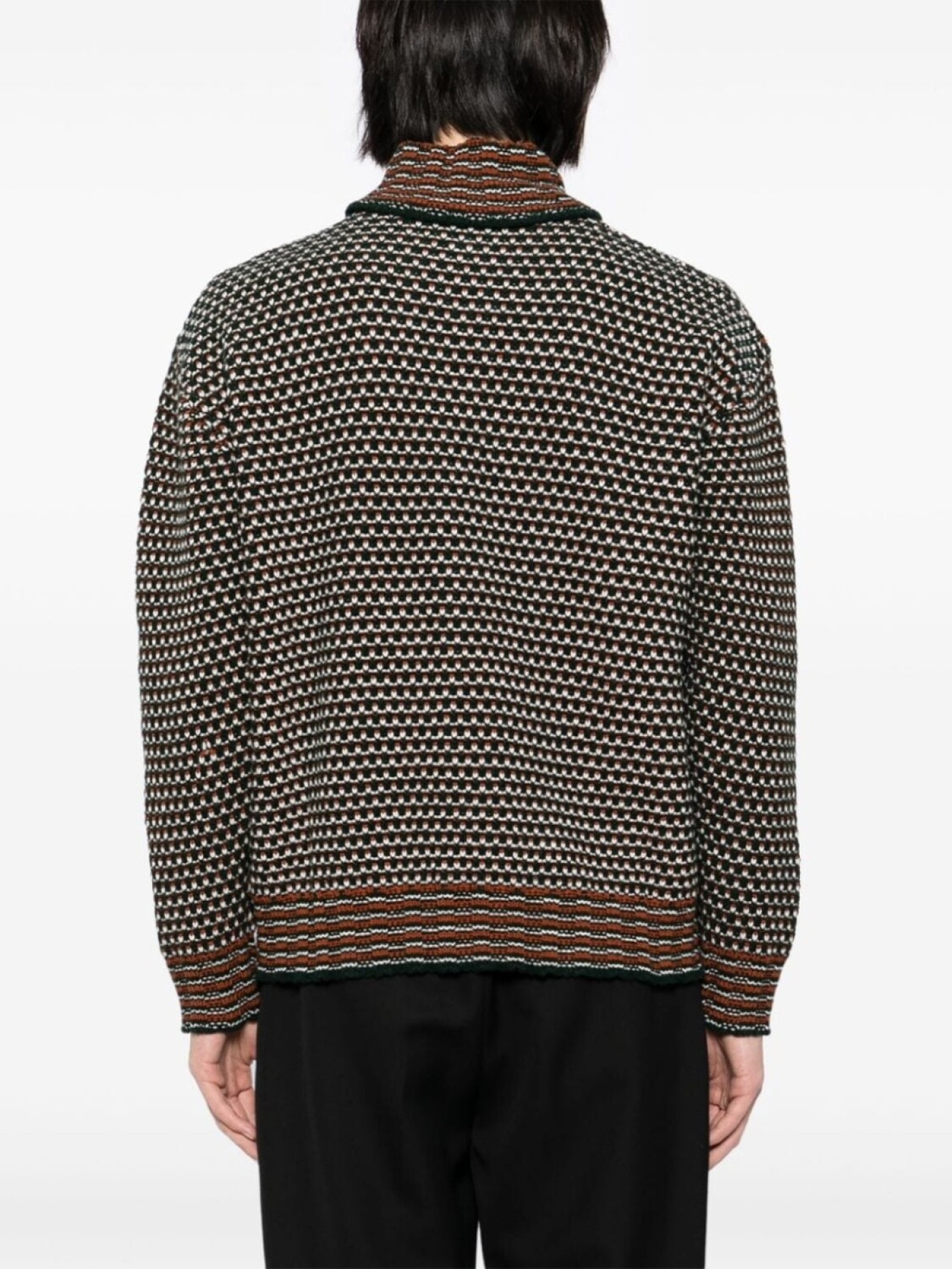 Зеленая/многоцветная мериносовая шерсть с узором интарсия, застежка-молния спереди, воротник-поло, контрастная отделка, длинные рукава, внутренние карманы, ребристые манжеты и подол