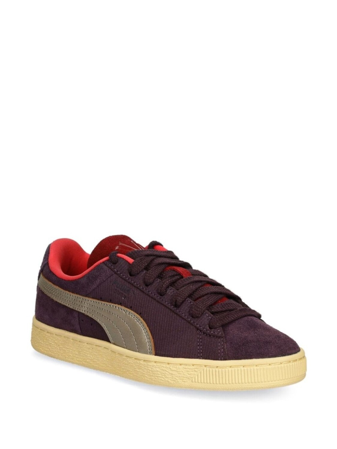Фиолетовая телячья замша логотип Formstrip штамп с логотипом сзади круглый носок шнуровка спереди язычок с логотипом фирменная стелька резиновая подошва