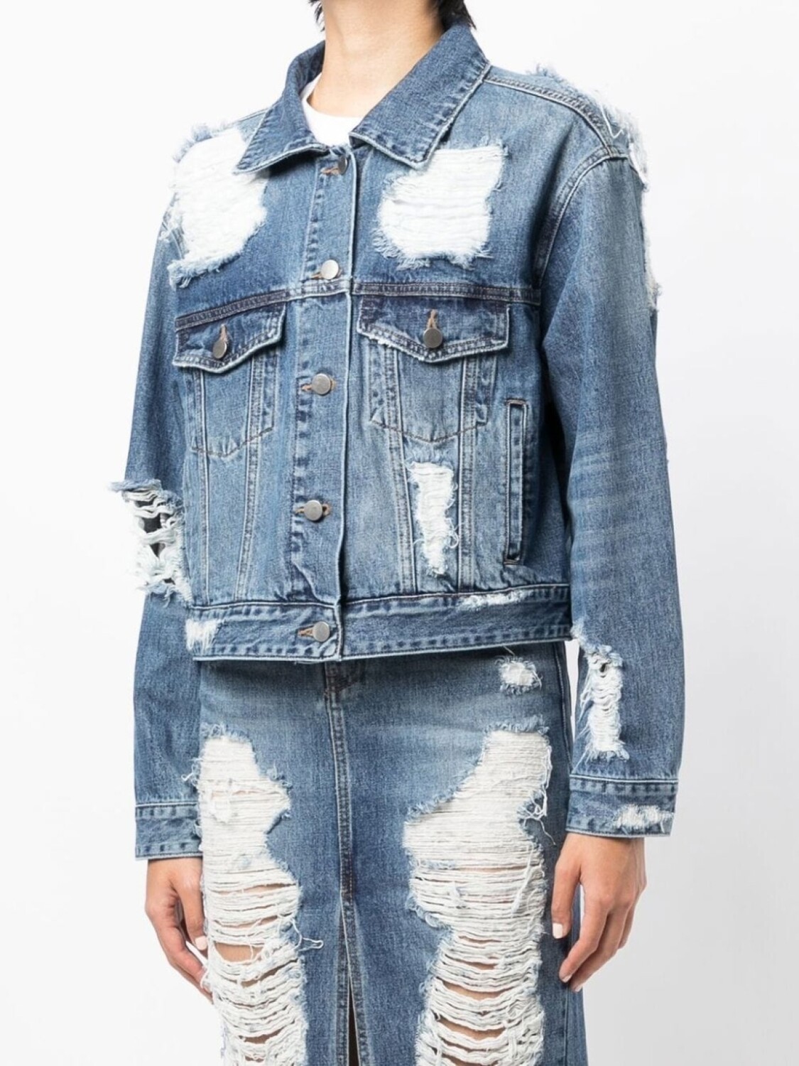Искусственно состаренное покрытие, классический воротник, длинные рукава, застежка на пуговицах спереди и два передних кармана с клапанами.