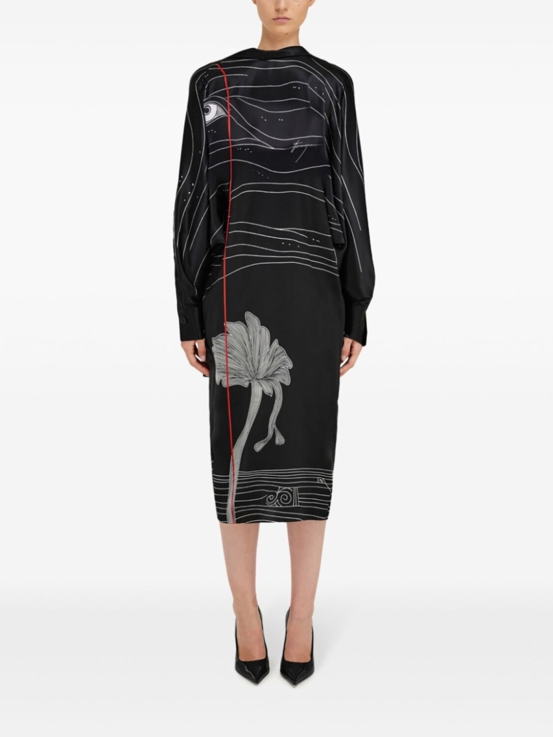 Платье из атласа с принтом Ferragamo Spirit