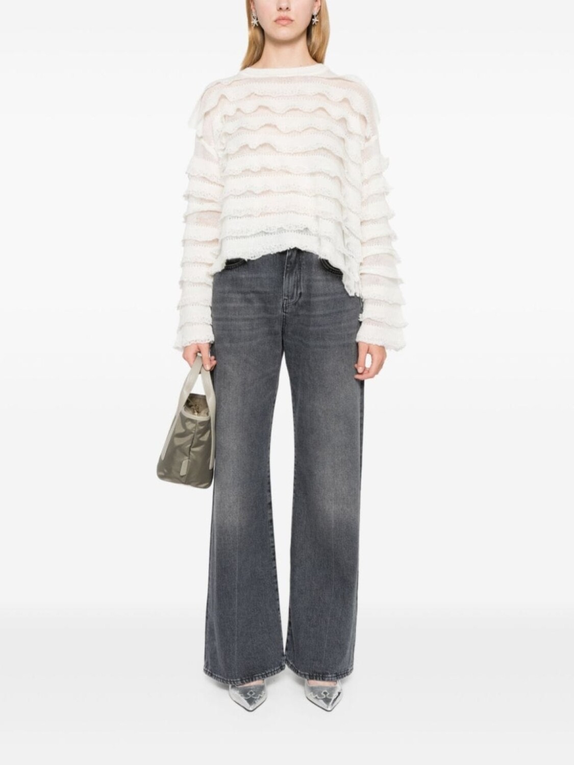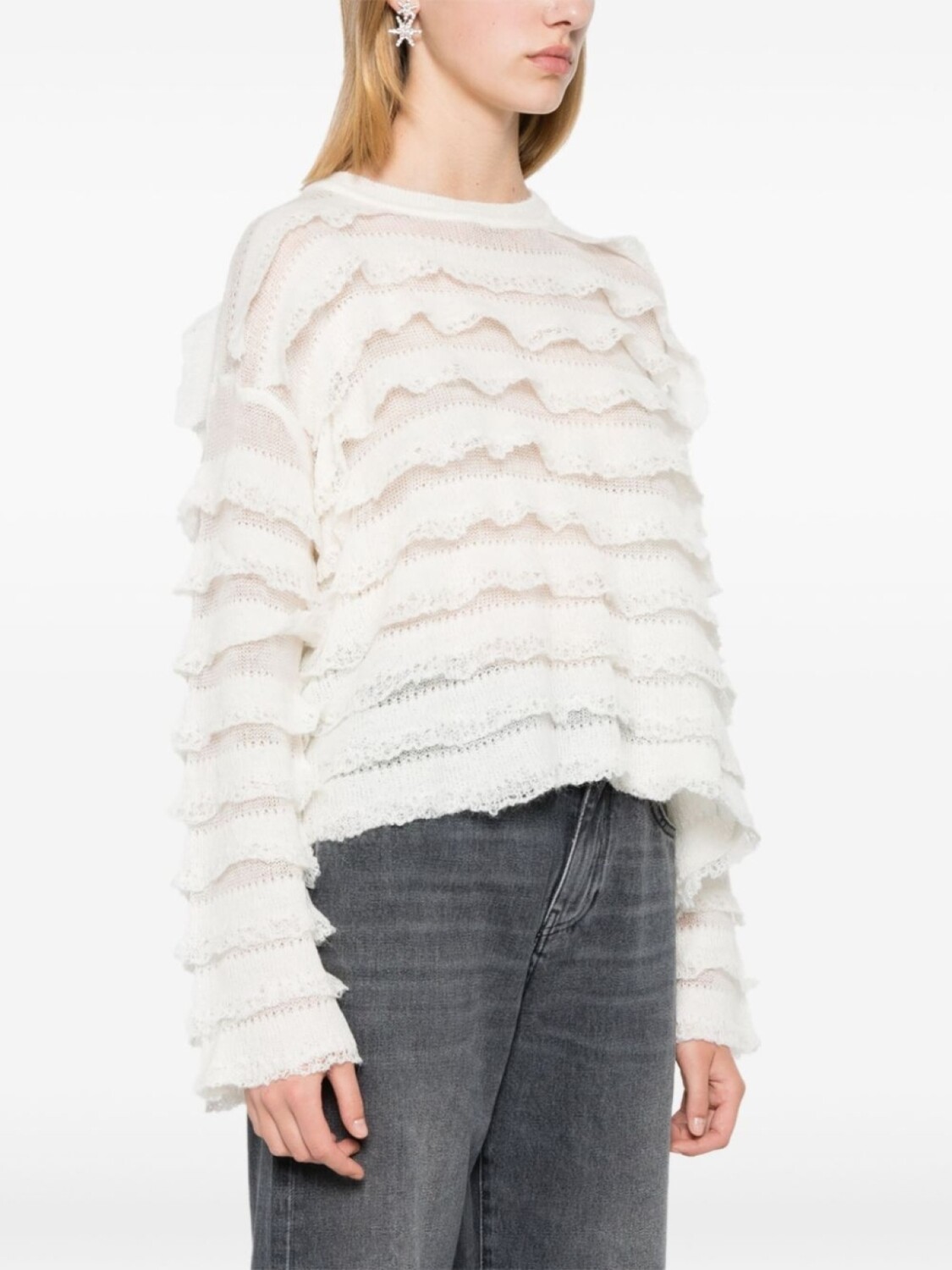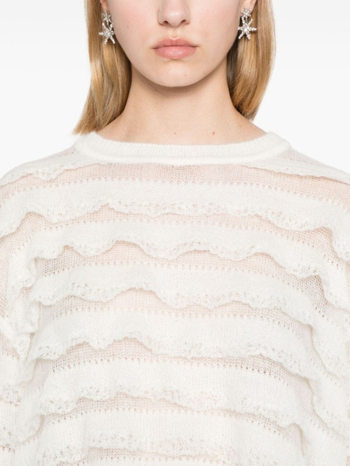Джемпер ажурной вязки с оборками TWINSET, белый