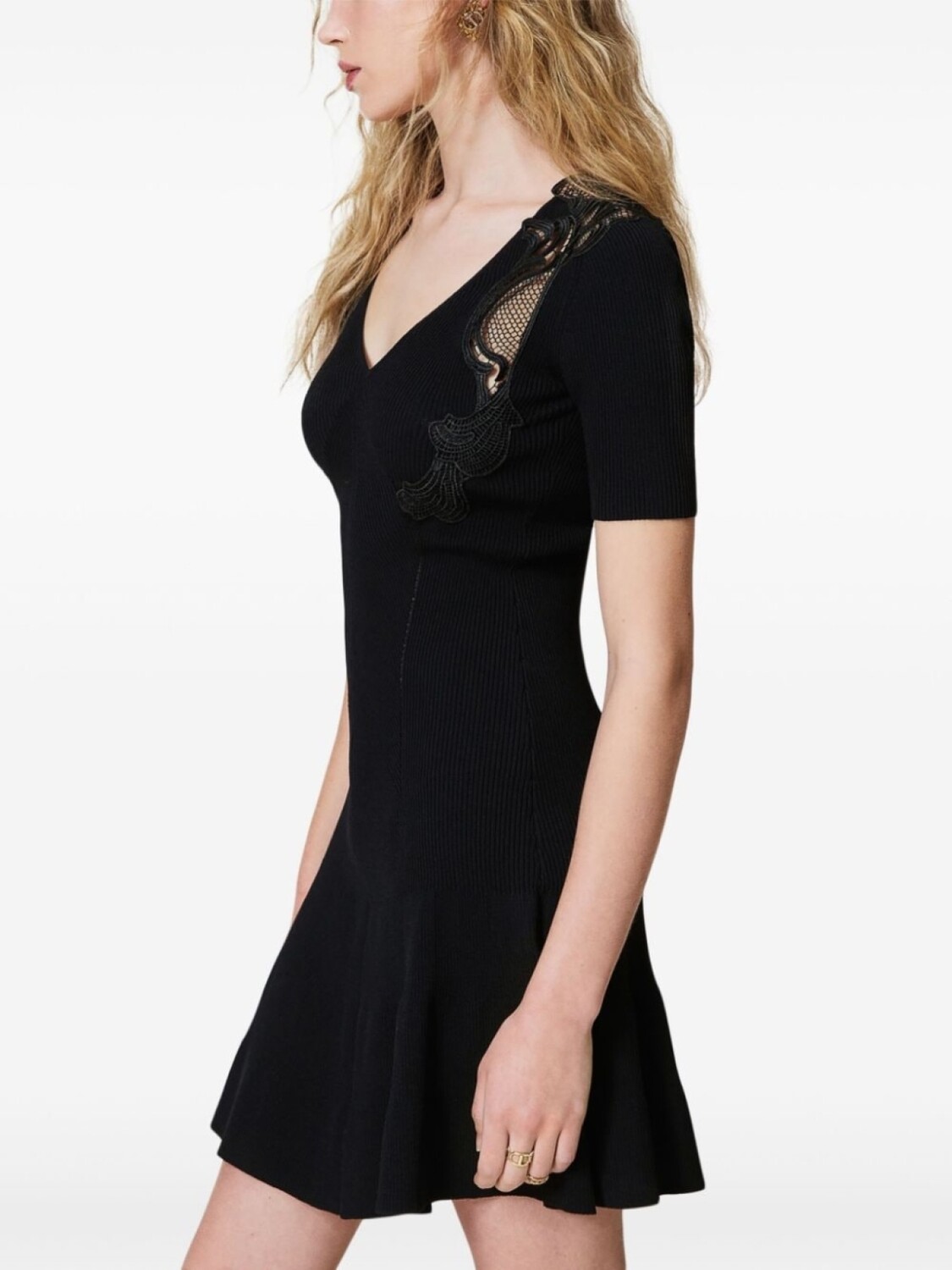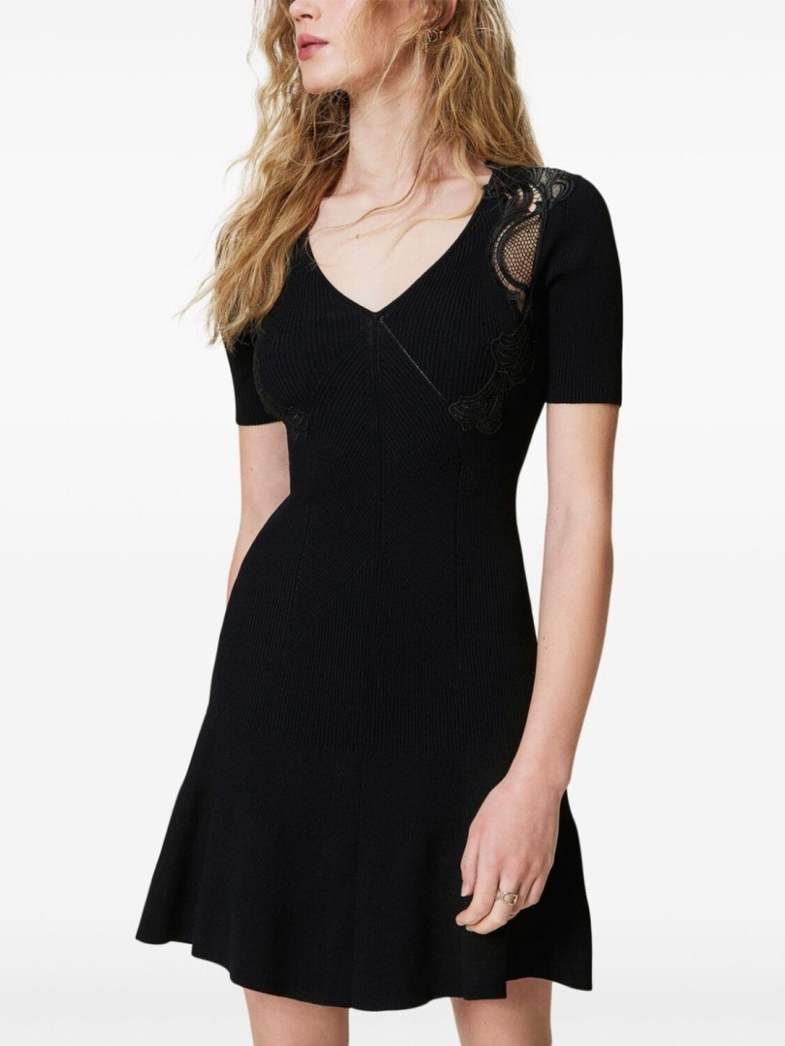 Мини-платье TWINSET с кружевными деталями и рубчиком, черный
