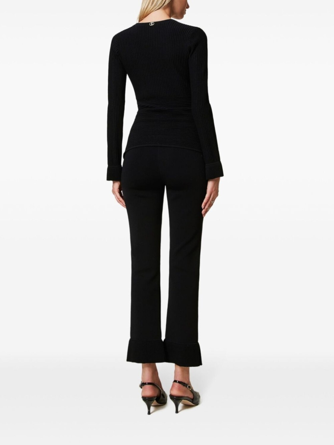 Расклешенные трикотажные брюки TWINSET, черный