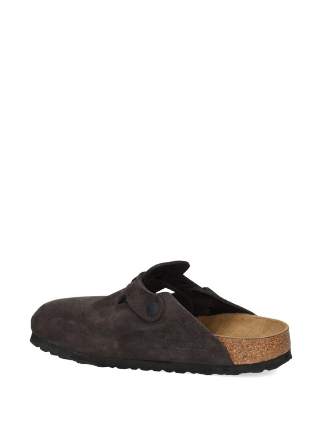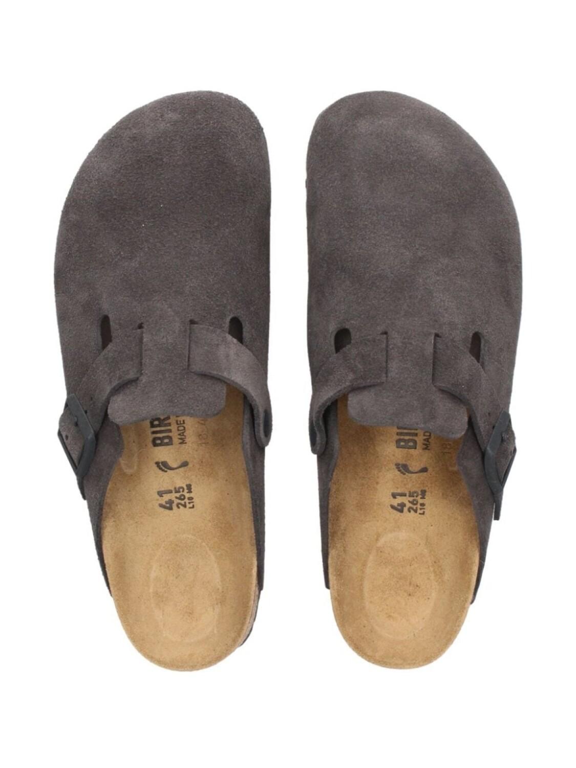 Бархатно-серая замша, тональная фурнитура, выгравированный логотип, миндалевидный носок, застежка на пряжку-ремешок, фирменная стелька, формованная стелька, плоская резиновая подошва, стиль slip-on