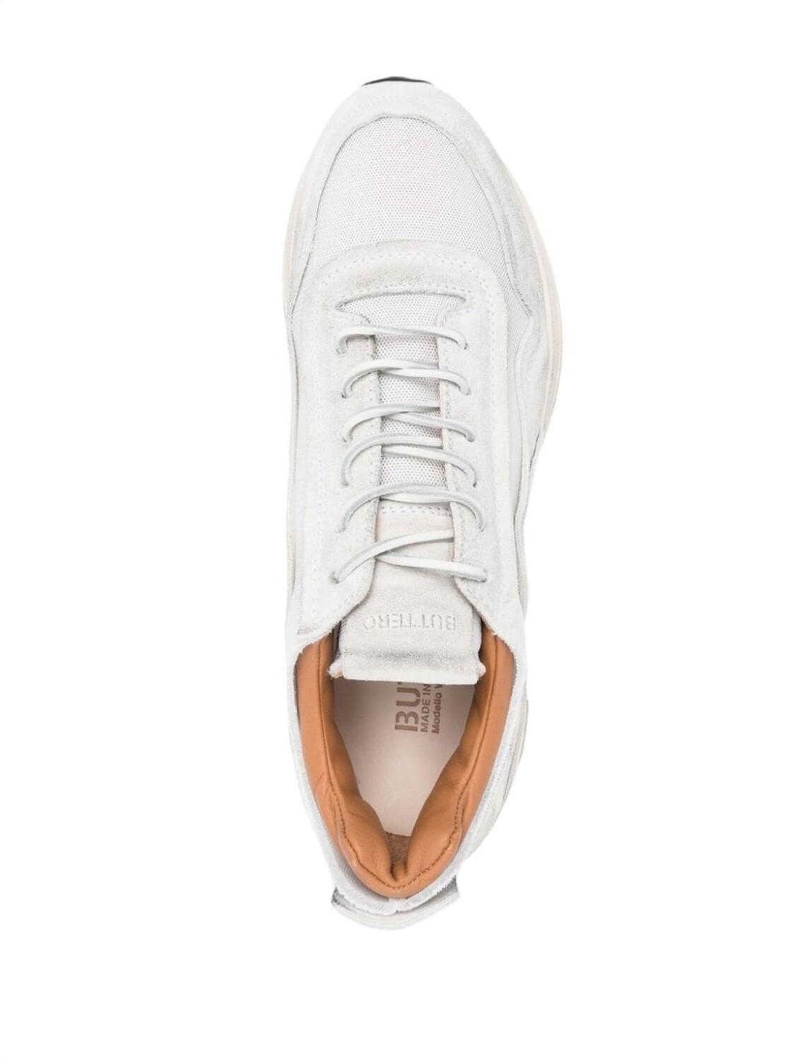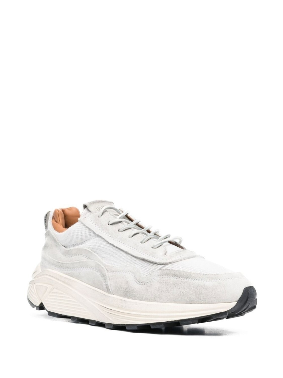 Белый, телячья кожа, сетчатые вставки, искусственно состаренное покрытие, нашивка с логотипом на язычке, закругленный носок, шнуровка спереди и подошва Vibram®.