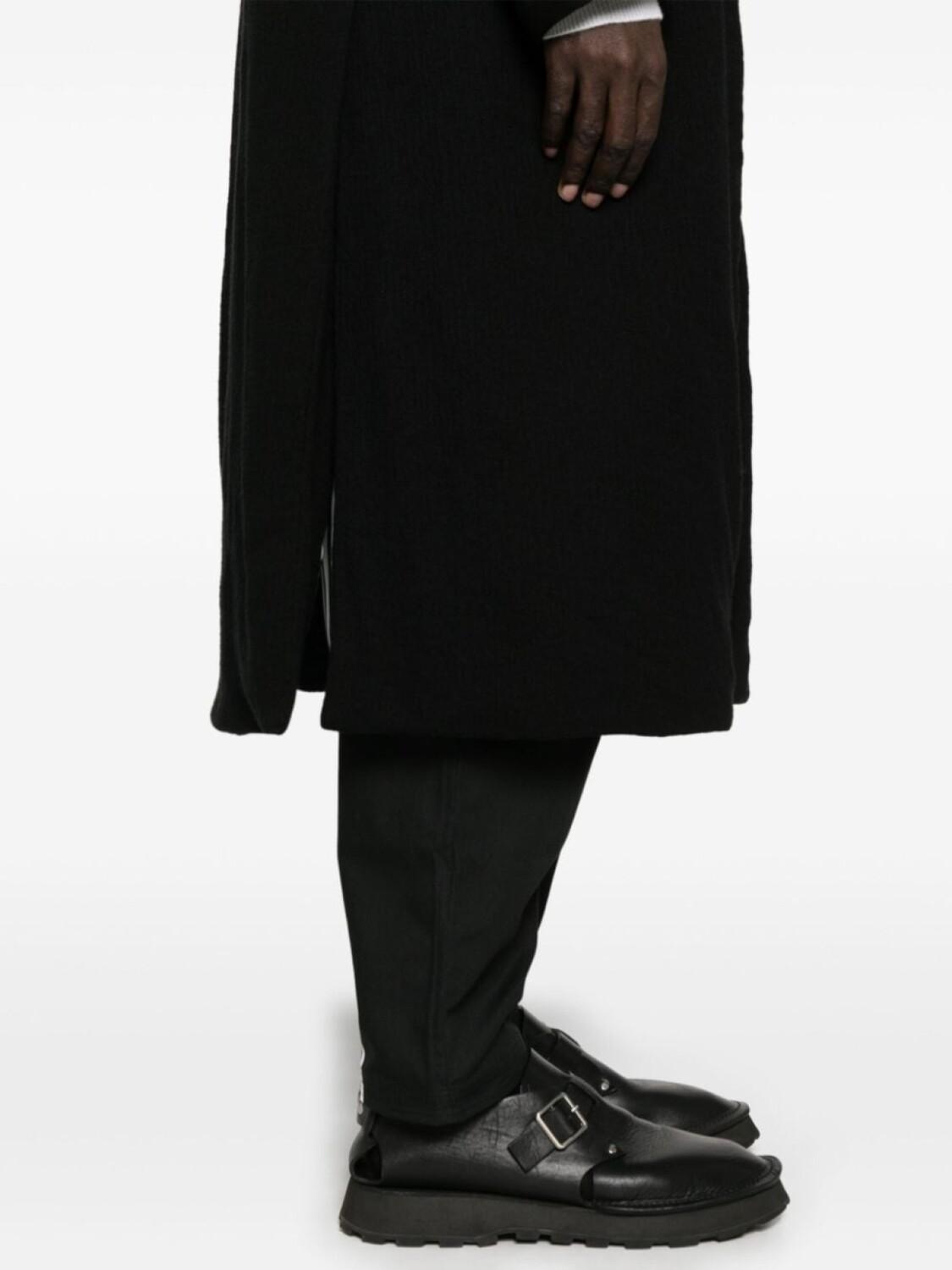 Подробнее о товаре: • черный • вирджинская шерсть • флисовый материал • дутый материал • потайная пуговичная застежка спереди • V-образный вырез • длинные рукава реглан • два кармана с клапанами по бокам • разрезы сзади • внутренний прорезной карман • атласная подкладка • прямой подол • длинная модель • Это унисекс-модель. Обратите внимание, что для нее используется мужская размерная сетка.