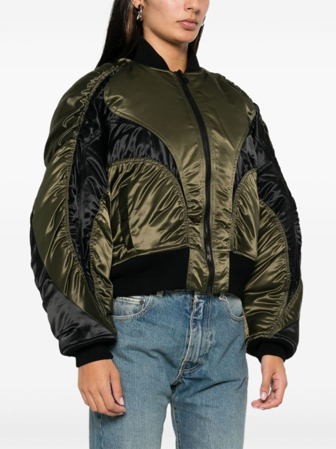 Атласная куртка-бомбер Mugler, зеленый