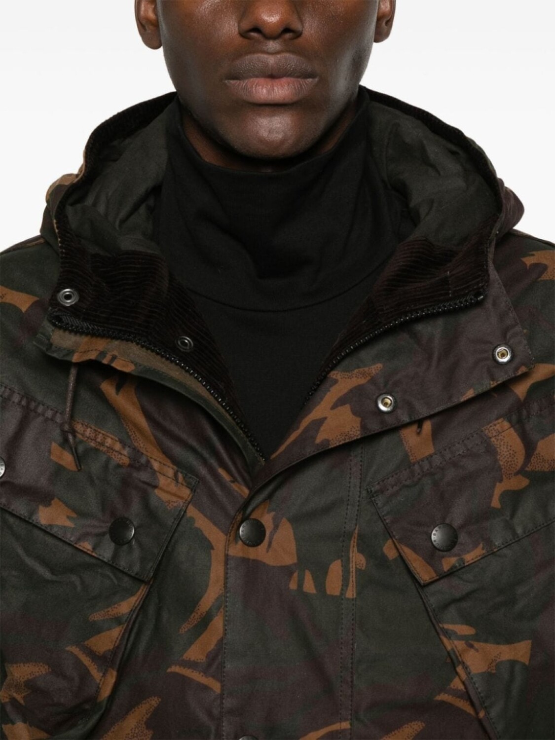 Подробнее о товаре: • коричневый/разноцветный • хлопок • вощеный материал • камуфляжный принт • застежка на кнопки и молнию спереди • капюшон с кулиской • вельветовая вставка • воротник-стойка • длинные рукава • манжеты в рубчик • карман с клапаном на рукаве • два нагрудных кармана с клапанами • два передних кармана с клапанами • вышитый логотип спереди • внутренний накладной карман • цельная подкладка • прямой подол