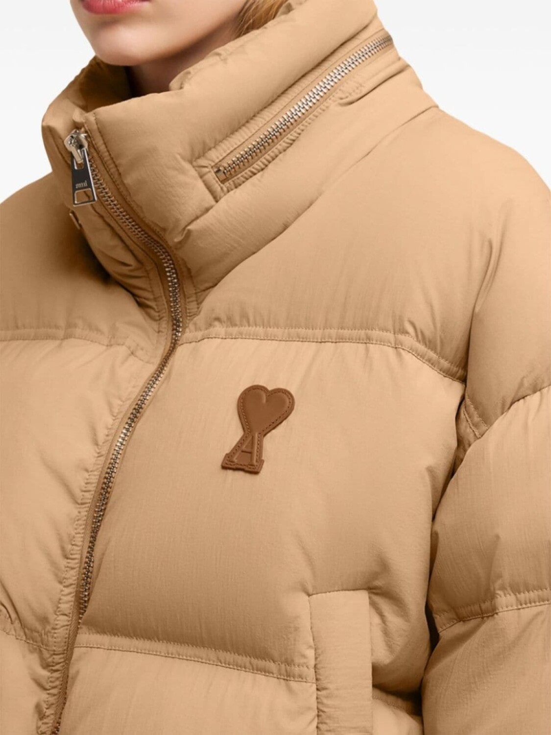AMI Paris пуховик с логотипом, серый