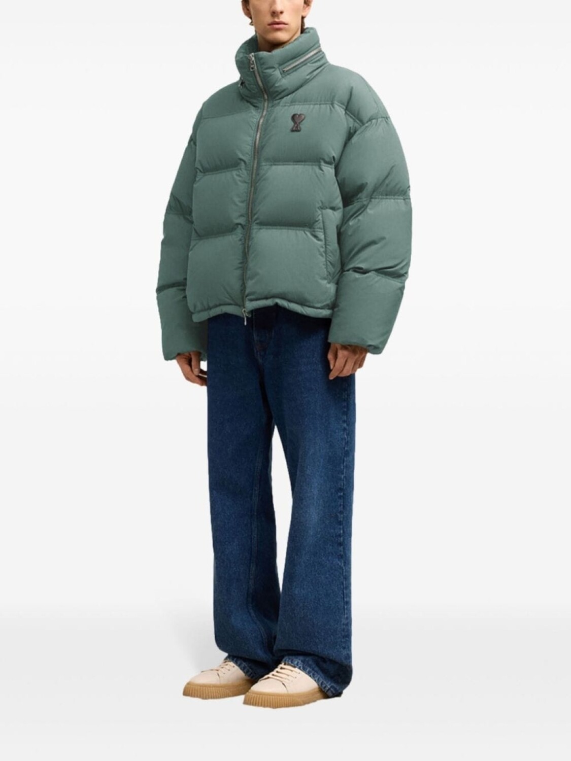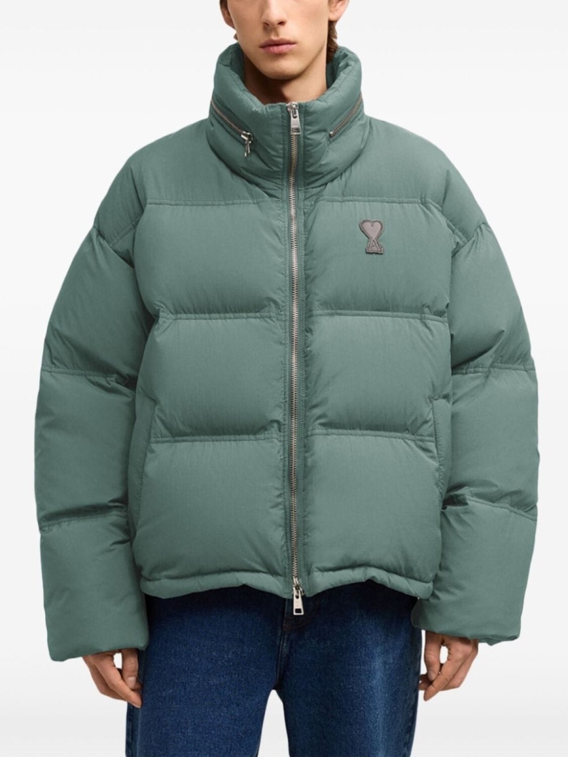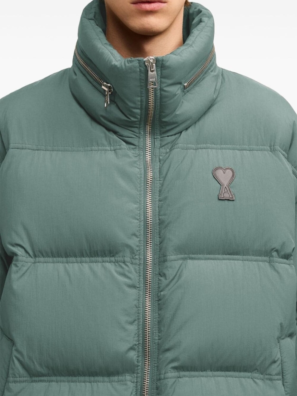 AMI Paris пуховик с монограммой Ami de Coeur, зеленый