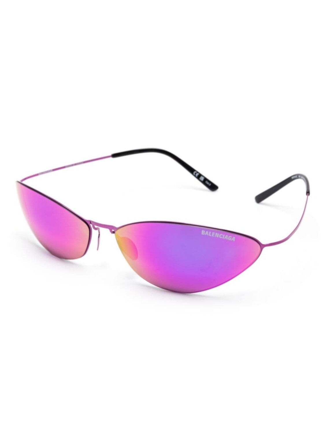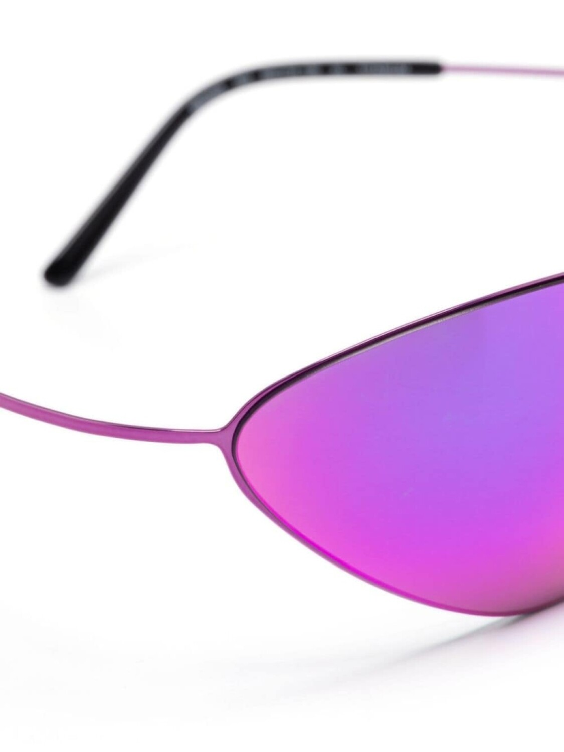 Фиолетовый, титан, оправа «кошачий глаз», зеркальные линзы с защитой от ультрафиолета, защитная пленка с логотипом, носоупоры, прямые дужки с закругленными концами, В комплект входит защитный чехол для очков.