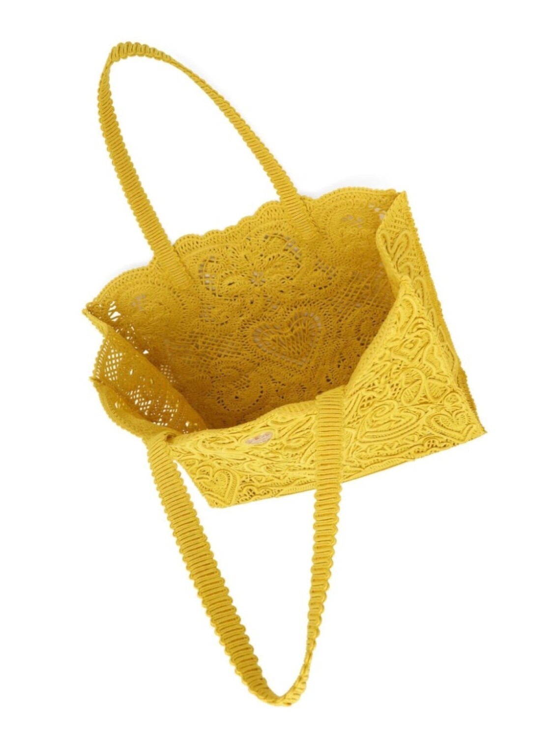 Горчично-желтый, смесовый хлопок, золотистая фурнитура, две длинные верхние ручки и основное отделение.