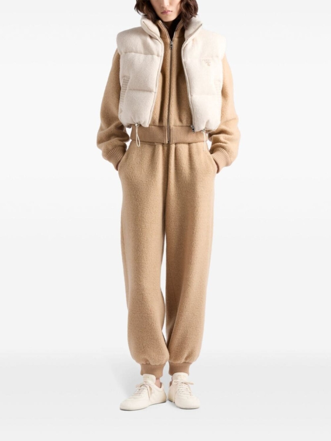 Prada дутый жилет с вышитым логотипом, серый 285 708₽