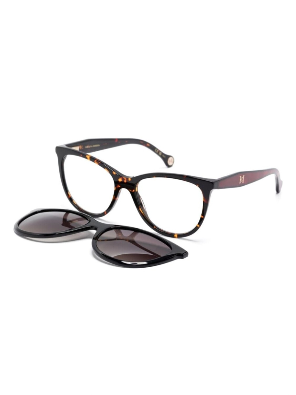 Черный/коричневый/бордовый, ацетат, эффект черепашьего панциря, оправа «бабочка», прозрачные линзы, носоупоры, прямые дужки, дужки с закругленными концами, солнцезащитные клипсы, В комплект входит защитный чехол для очков., Обратите внимание, что на FARFETCH продаются оправы с линзами без диоптрий.