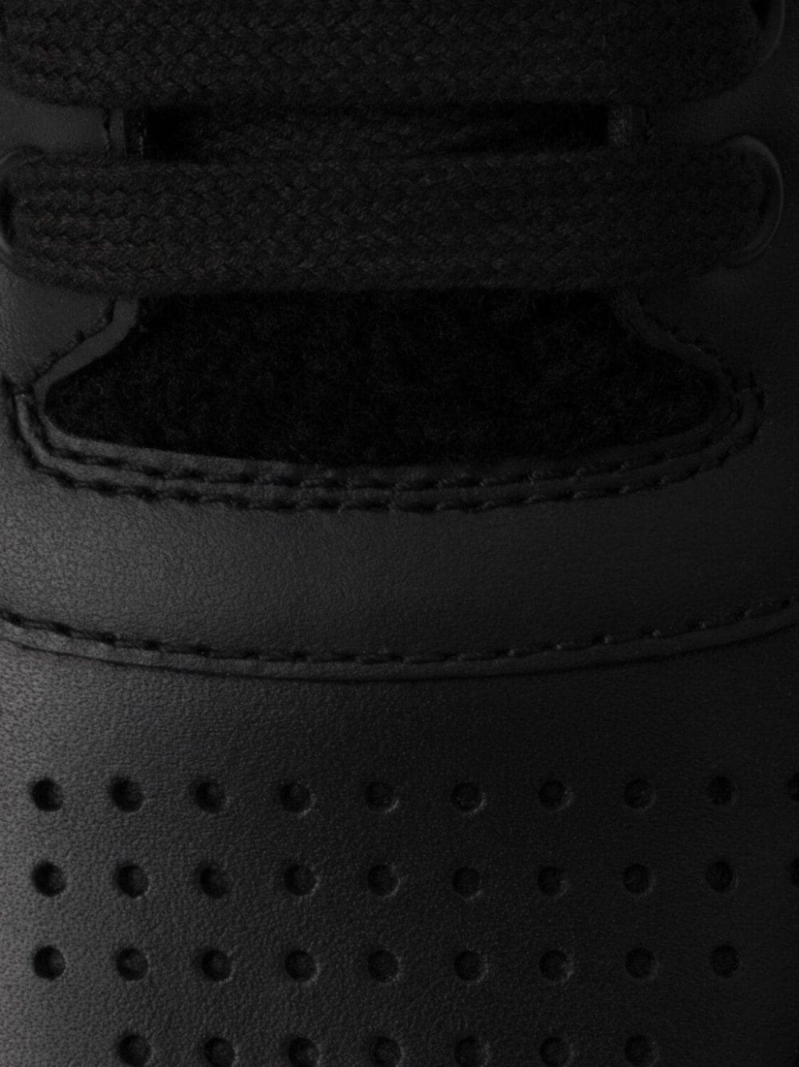Подкладка из черной овчины, шнуровка спереди, фирменный задник, золотистые буквы логотипа, эмалированный треугольный логотип, круглый носок, перфорированный носок, плоская подошва, резиновая подошва с протектором