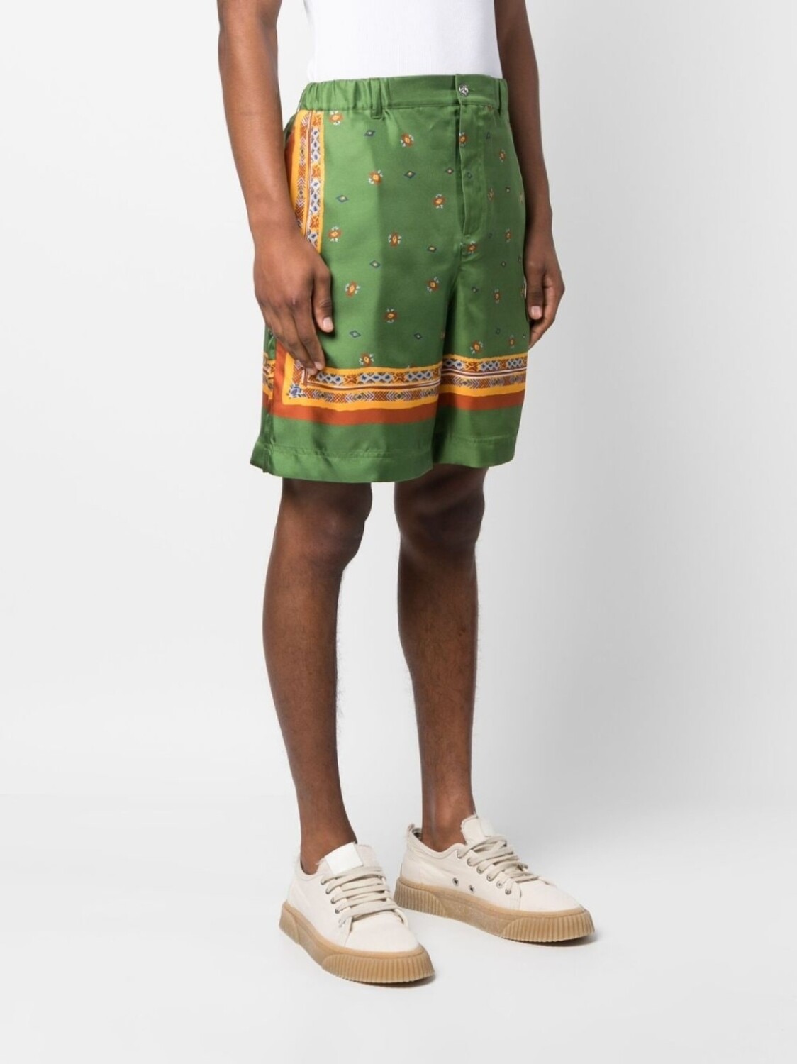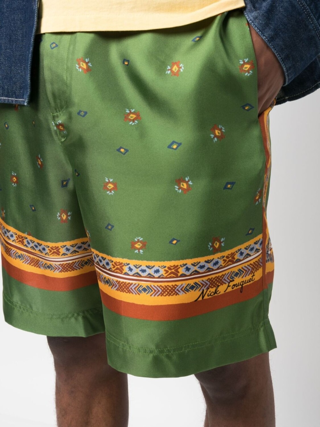 Nick Fouquet шелковые шорты с графичным принтом, зеленый