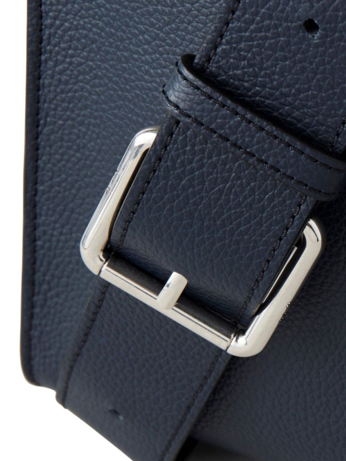 Темно-синий, телячья кожа, зернистая текстура, серебристая фурнитура, откидной верх, застежка с поворачивающимся замком, прорезной карман спереди, основное отделение, тисненый логотип внутри, контрастная подкладка