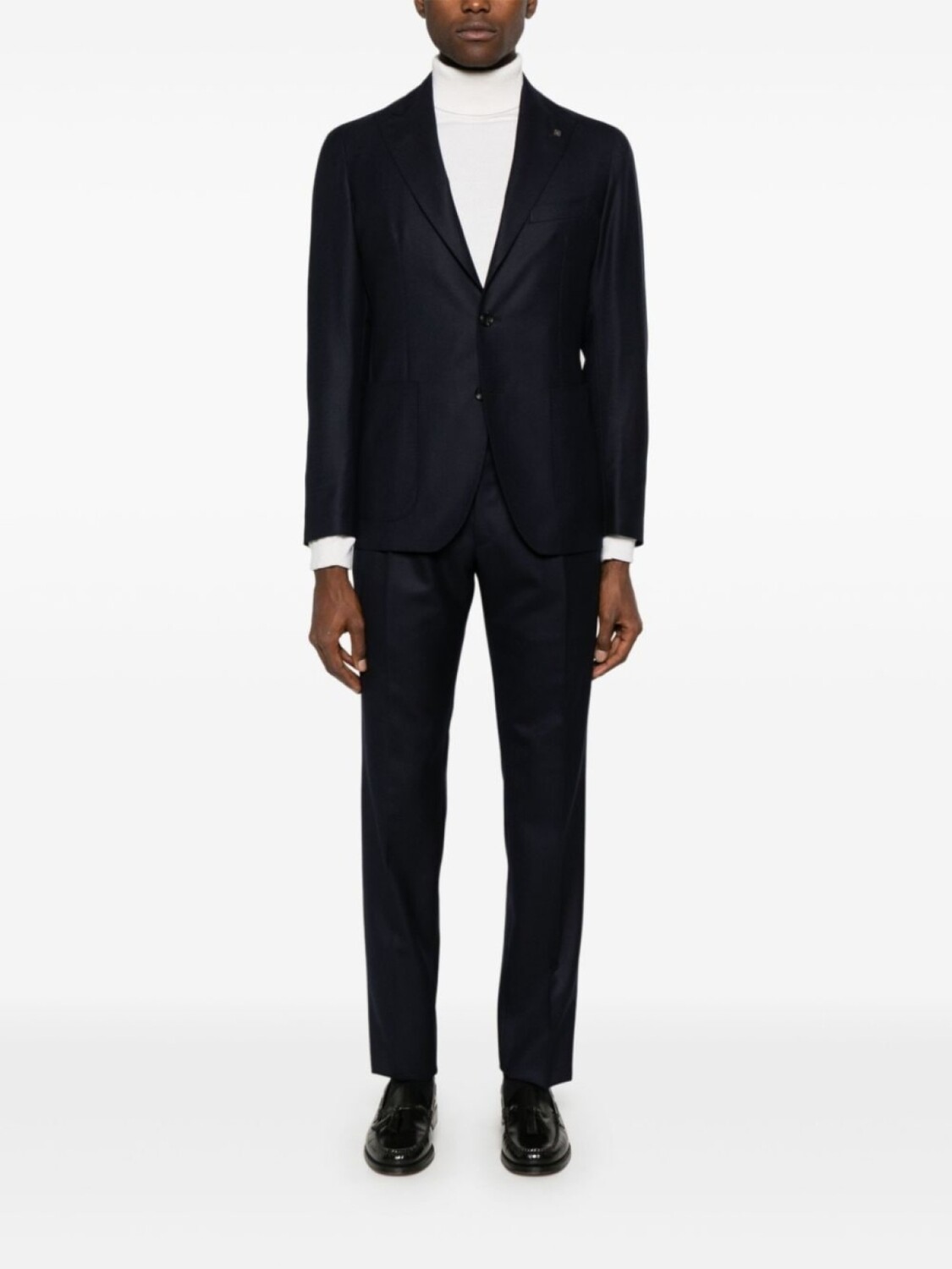 Подробнее о товаре: • темно-синий • вирджинская шерсть • эффект войлока • декоративная брошь • застежка на пуговицах спереди • заостренные лацканы • длинные рукава • рукава с манжетами на пуговицах • прорезной карман на груди • два накладных кармана по бокам • две боковые шлицы сзади • внутренние прорезные карманы • частичная подкладка • застежка на молнии и пуговице спереди • петли для ремня • отделение для монет • два диагональных кармана по бокам • складки • стрелки • два прорезных кармана на пуговицах сзади • зауженный крой