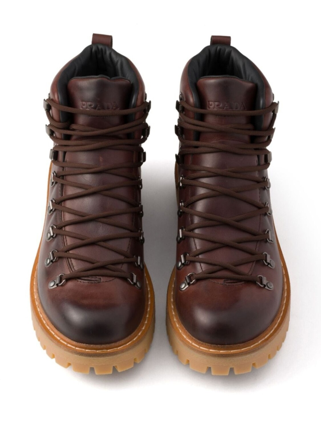 Ботинки Prada из кожи со шнуровкой, коричневый