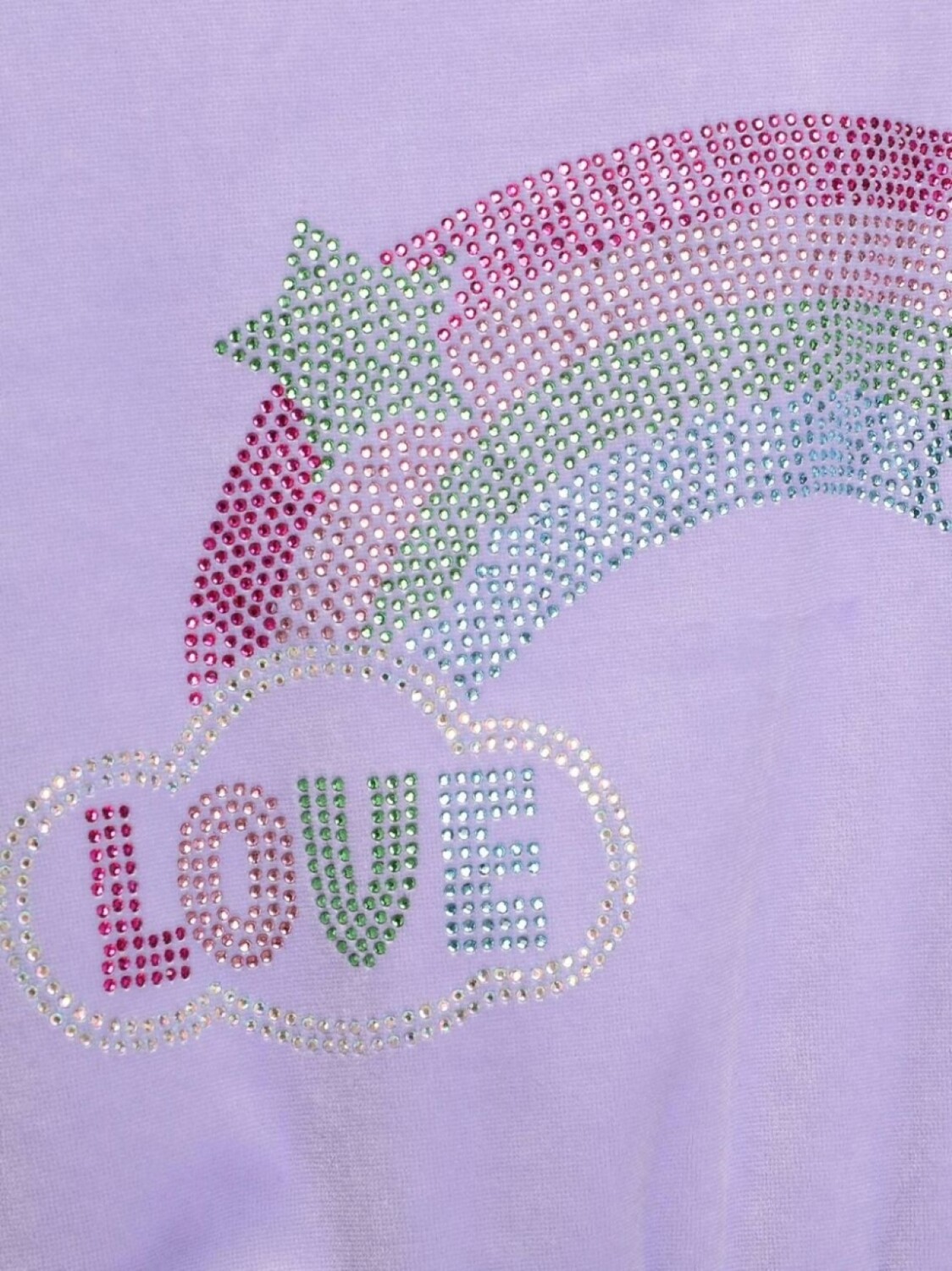 Лиловый, украшения из горного хрусталя, классический капюшон, длинные рукава, кулиска и прямой подол.