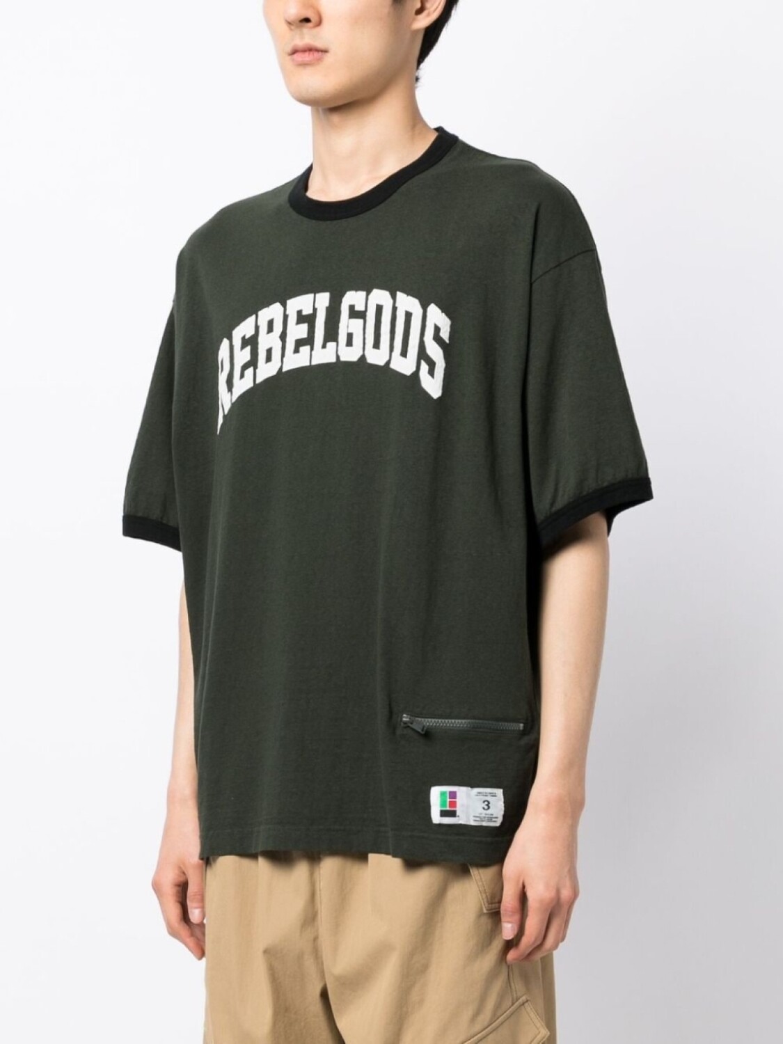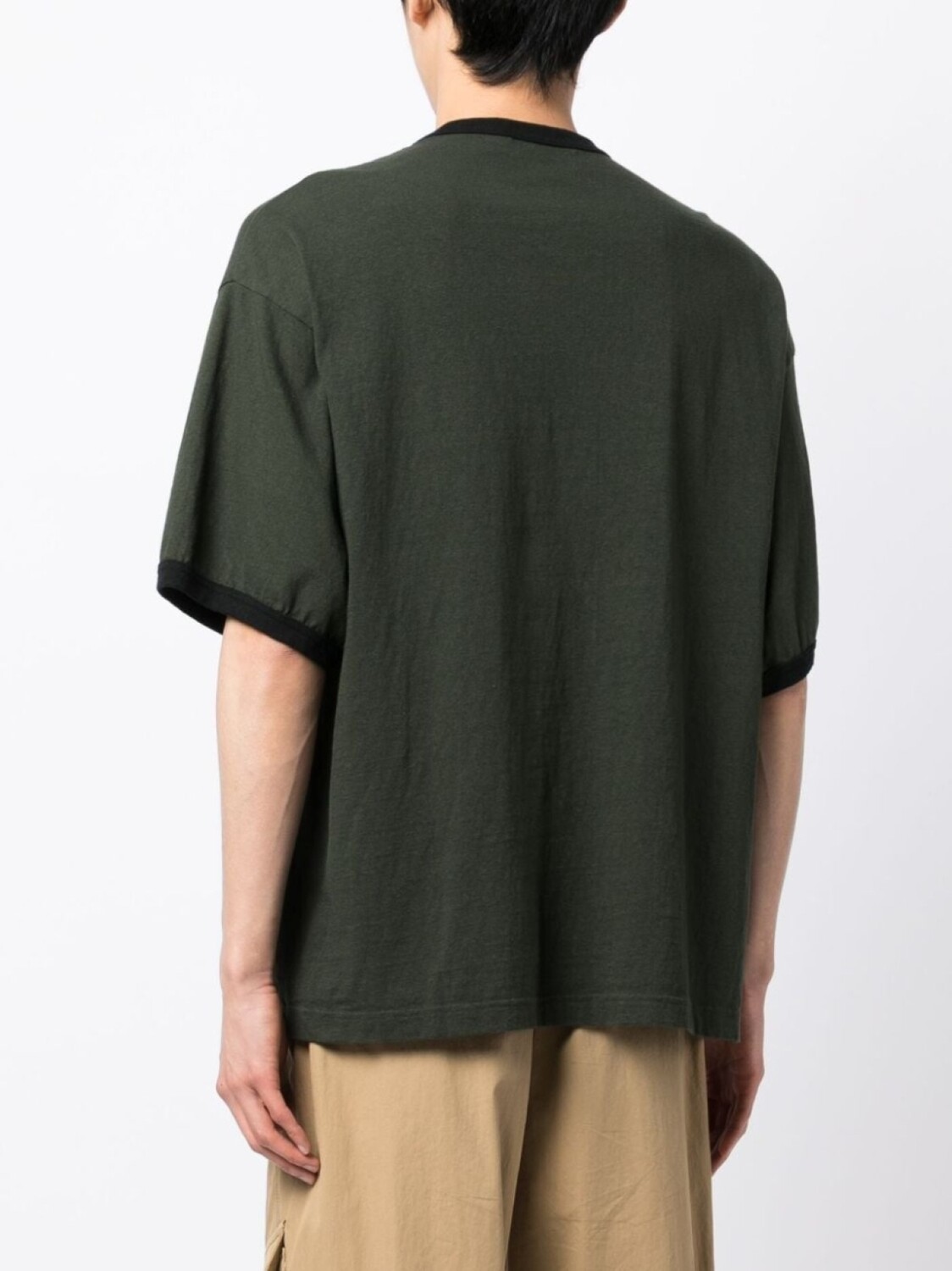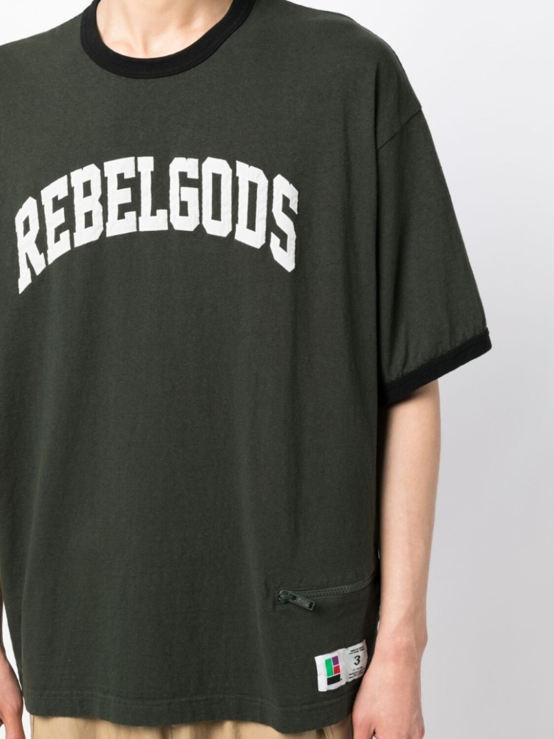 Хаки, черный, хлопок, принт с надписью спереди, нашивка с логотипом спереди, карман на молнии спереди, контрастная отделка, круглый вырез, приспущенные плечи и короткие рукава.
