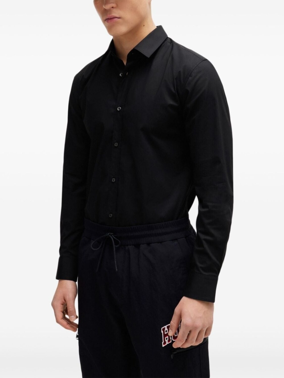 HUGO поплиновая рубашка узкого кроя, черный