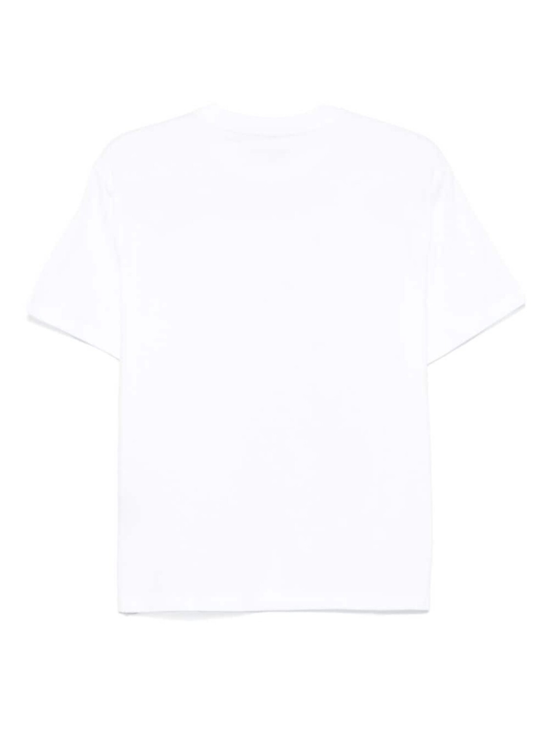 Белый органический хлопок джерси текстура ребристый круглый вырез короткие рукава вышитый логотип на груди прямой подол Этот товар изготовлен из не менее 50% органических материалов. Узнайте больше о том, что делает продукт сознательным на нашей странице Сознательные критерии