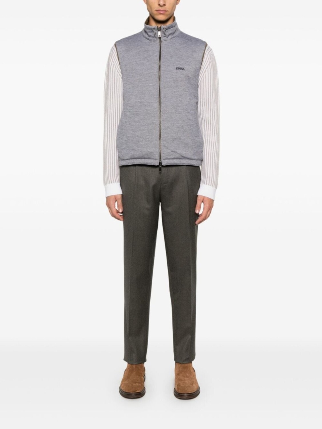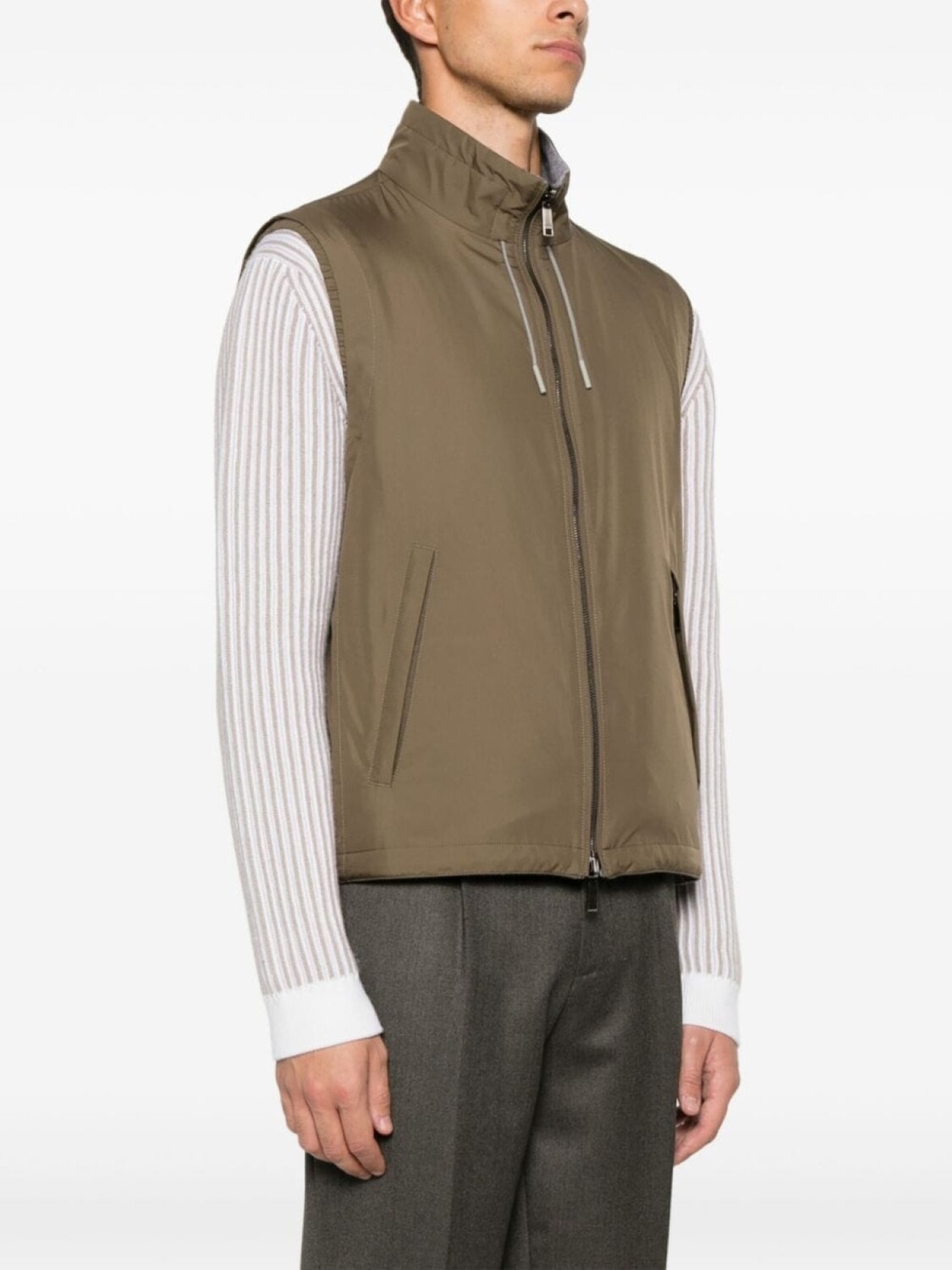 Подробнее о товаре: • оливково-зеленый/серый • двухсторонний дизайн • двусторонняя молния спереди • Размер А: • плотный внешний материал • воротник-стойка • вырез на завязках • без рукавов • эластичная отделка • два кармана на молнии по бокам • петля на внутренней стороне • подол с кулиской • Размер B: • смесовый кашемир • ткань джерси • эффект меланж • воротник-стойка • вырез на завязках • без рукавов • эластичная отделка • принт с логотипом на груди • два боковых кармана с застежкой на кнопки • подол с кулиской