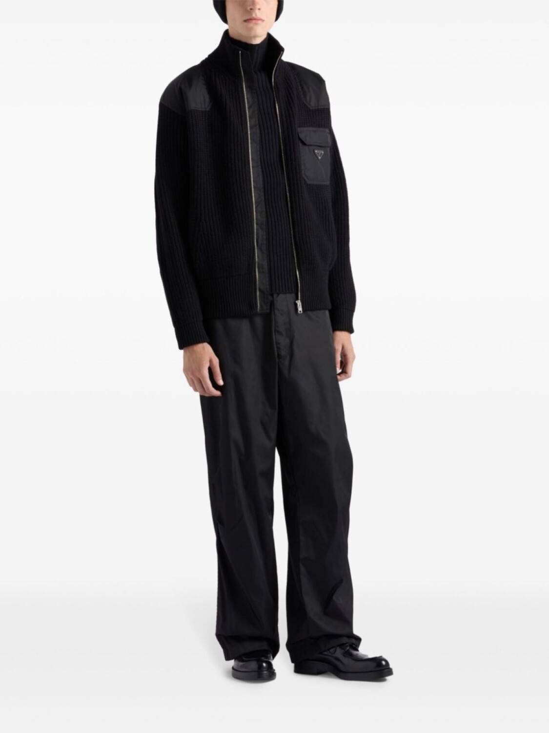 Кардиган Prada с застежкой-молнией и ребристым узором, черный