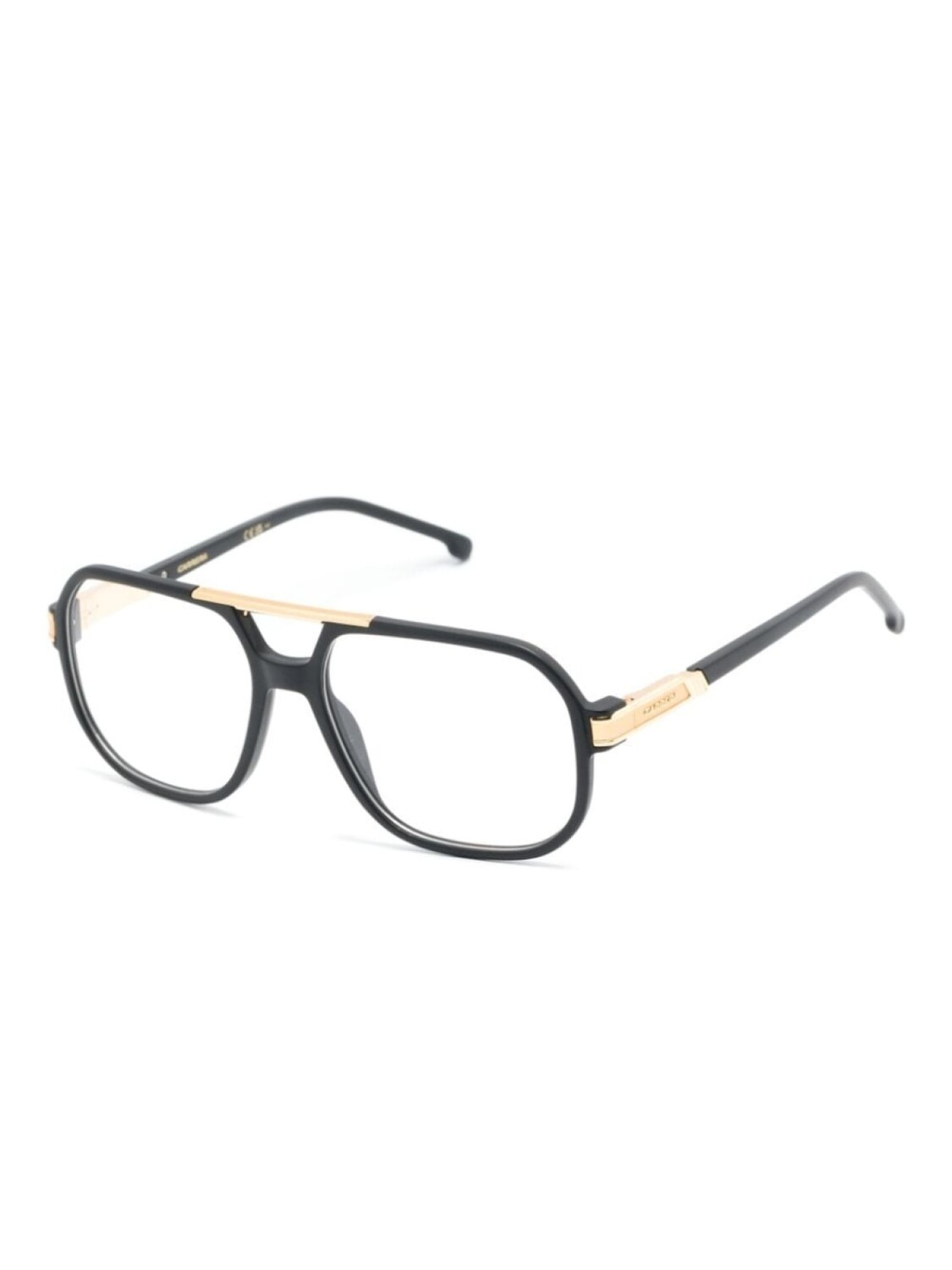 Черный/золотистый, ацетат, оправа «пилот», прозрачные линзы, защитная пленка, двойной мост, гравированный логотип на дужках, прямые дужки, дужки с закругленными концами, Обратите внимание, что на FARFETCH продаются оправы с линзами без диоптрий., В комплект входит защитный чехол для очков.