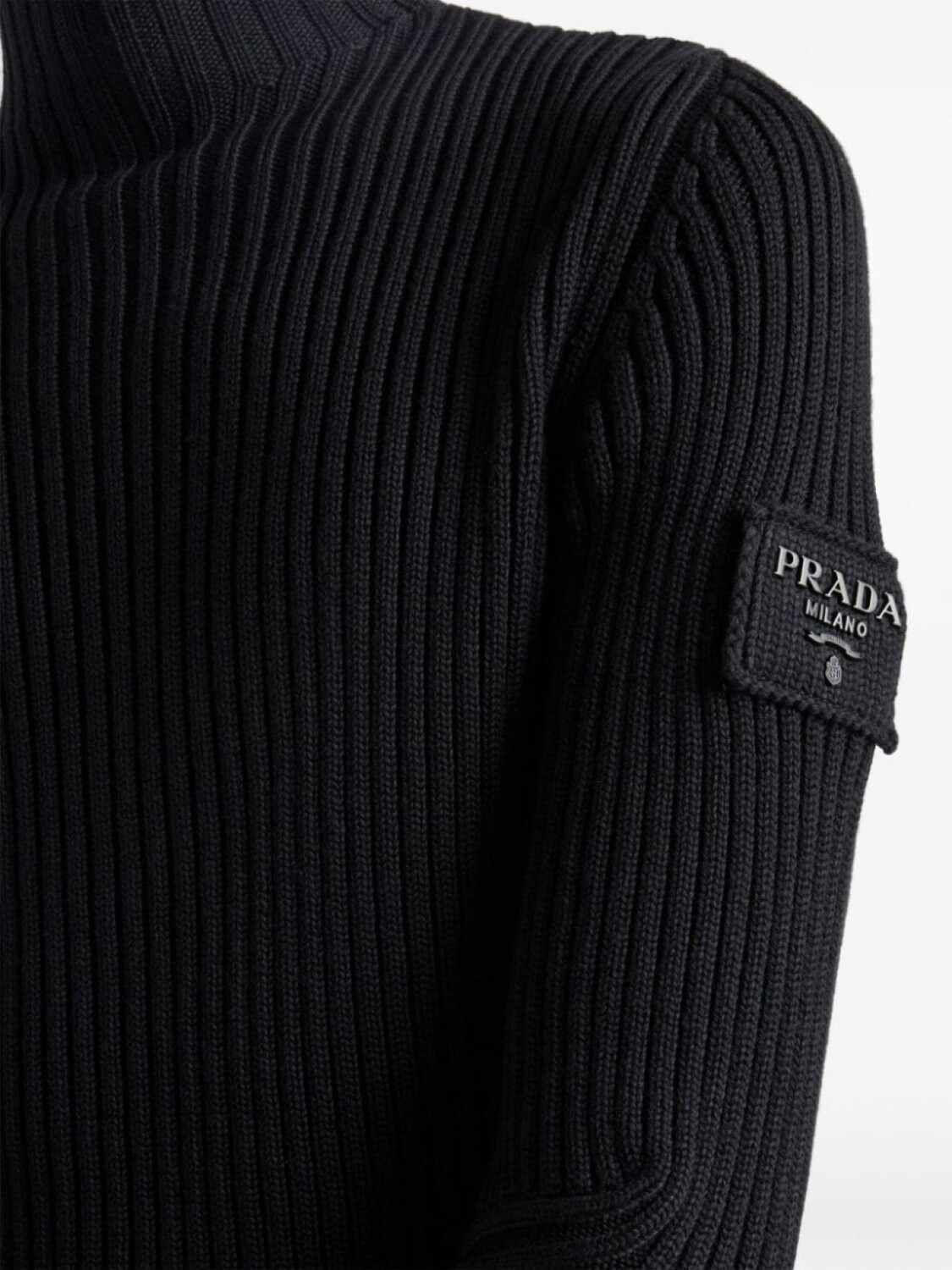 Свитер из шерстяной вязки в рубчик с нашивкой-логотипом Prada, черный
