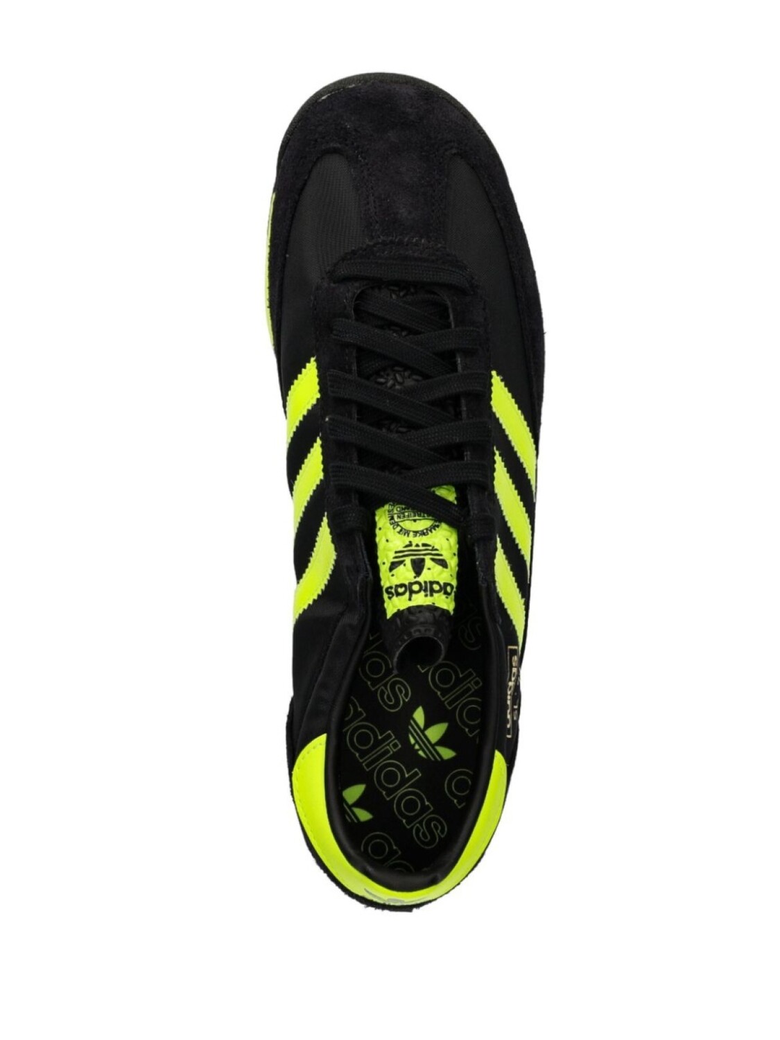 Черный/желтый телячья замша/телячья кожа панельный дизайн шнуровка спереди контрастный фирменный задник логотип сбоку фирменный логотип с тремя полосками нашивка с логотипом на язычке круглый носок фирменная стелька плоская резиновая подошва