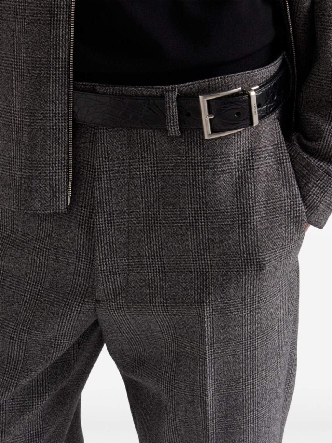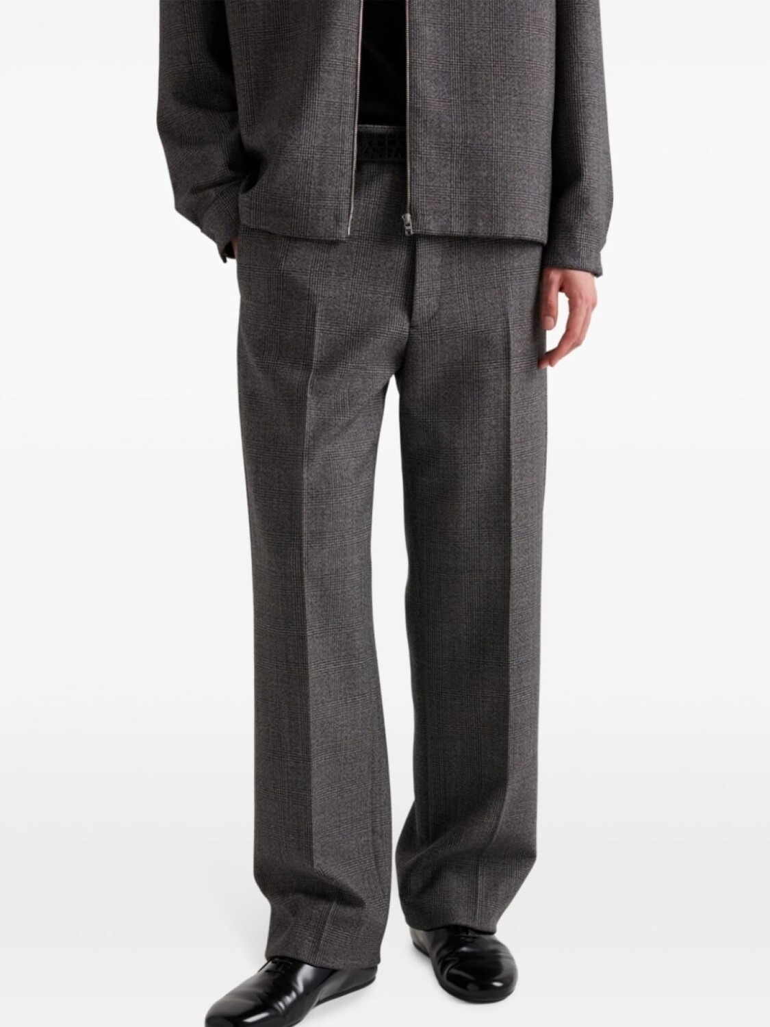 Брюки из шерсти Prada с узором «гусиная лапка», серый