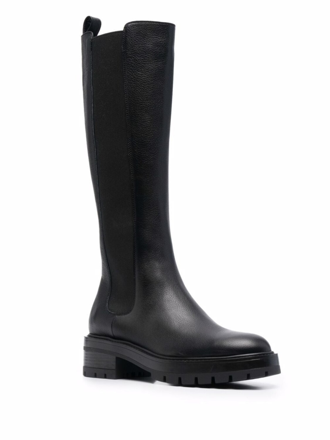 Петля для подтягивания сзади, эластичные боковые панели, миндалевидный носок, ребристая резиновая подошва и модель без застежки. Цвет: черный.