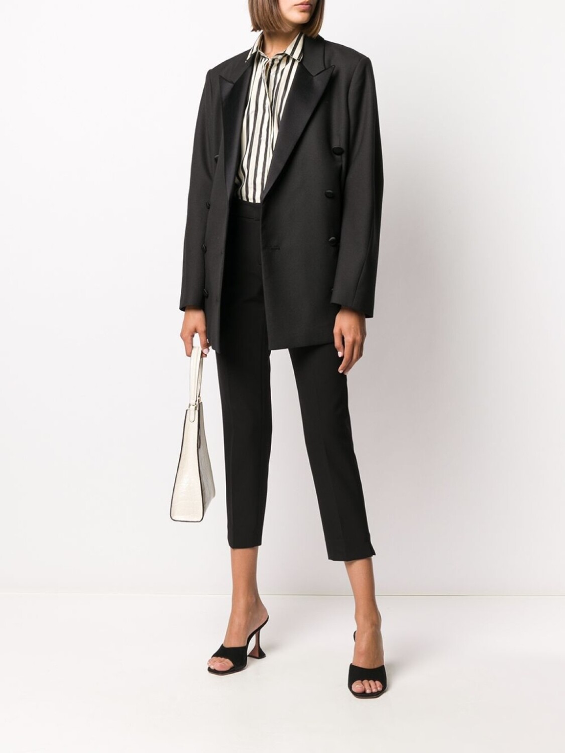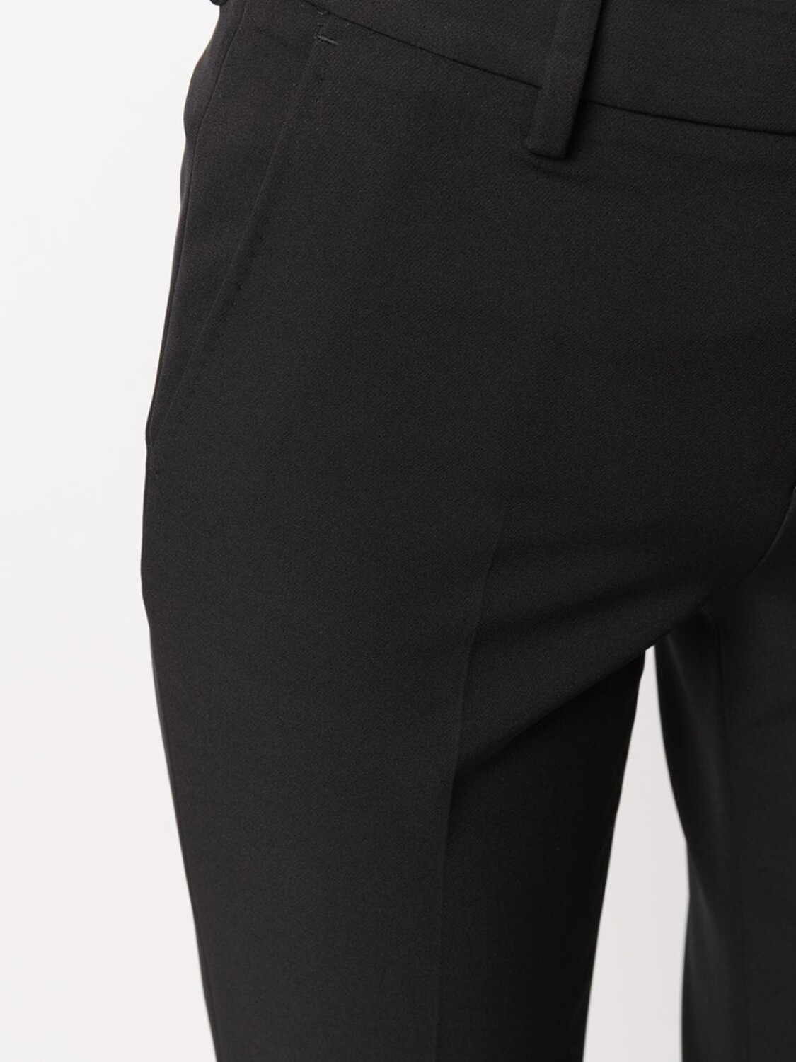 Петли для ремня, потайная застежка спереди, два вшитых кармана по бокам, узкий крой и укороченная длина. Цвет: черный.