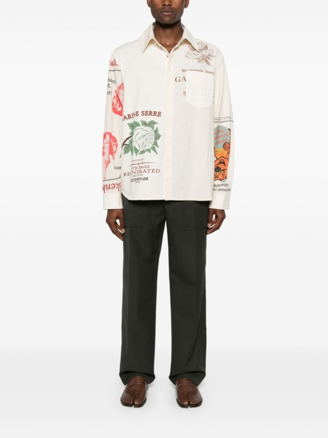 Рубашка Marine Serre из хлопка с принтом, серый