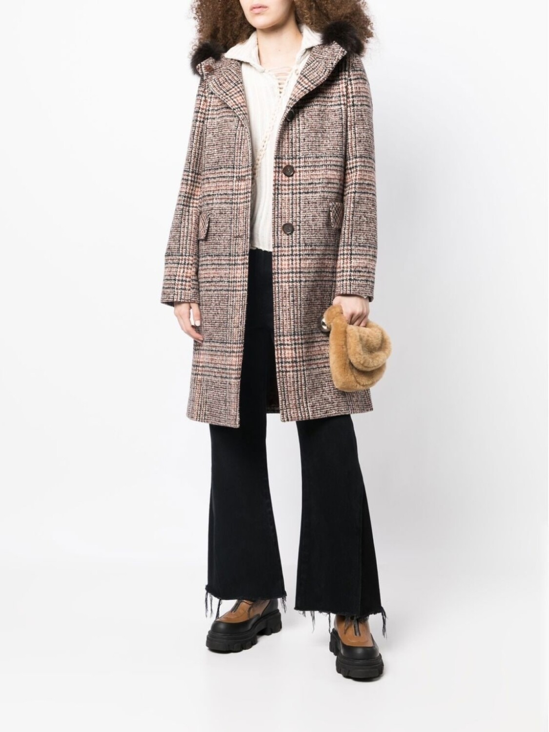 Cinzia Rocca клетчатое пальто с капюшоном, коричневый