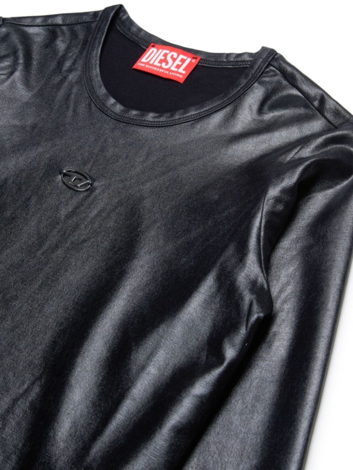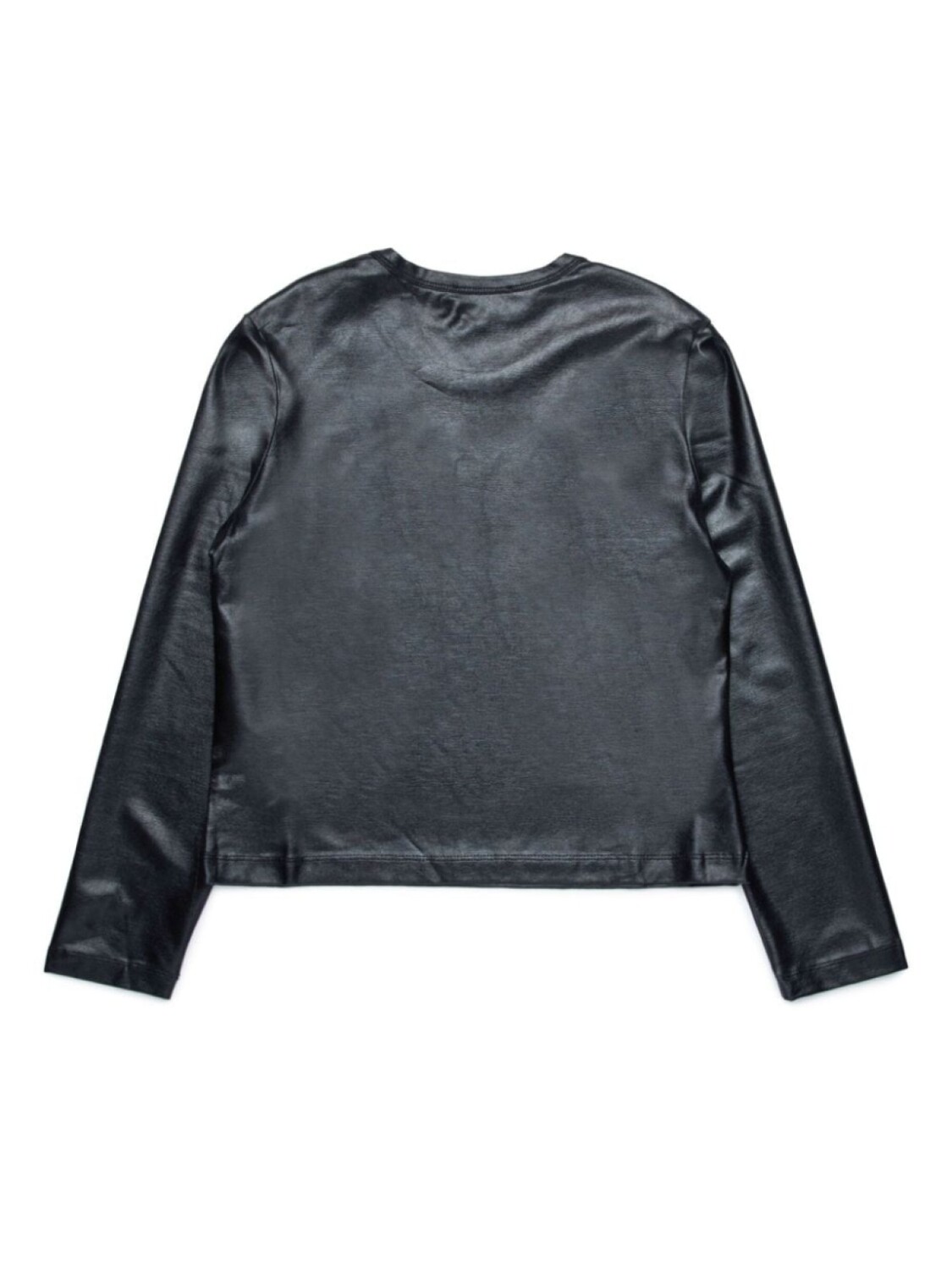 Черный, металл с покрытием, металлический логотип, круглый вырез, длинные рукава, прямой подол