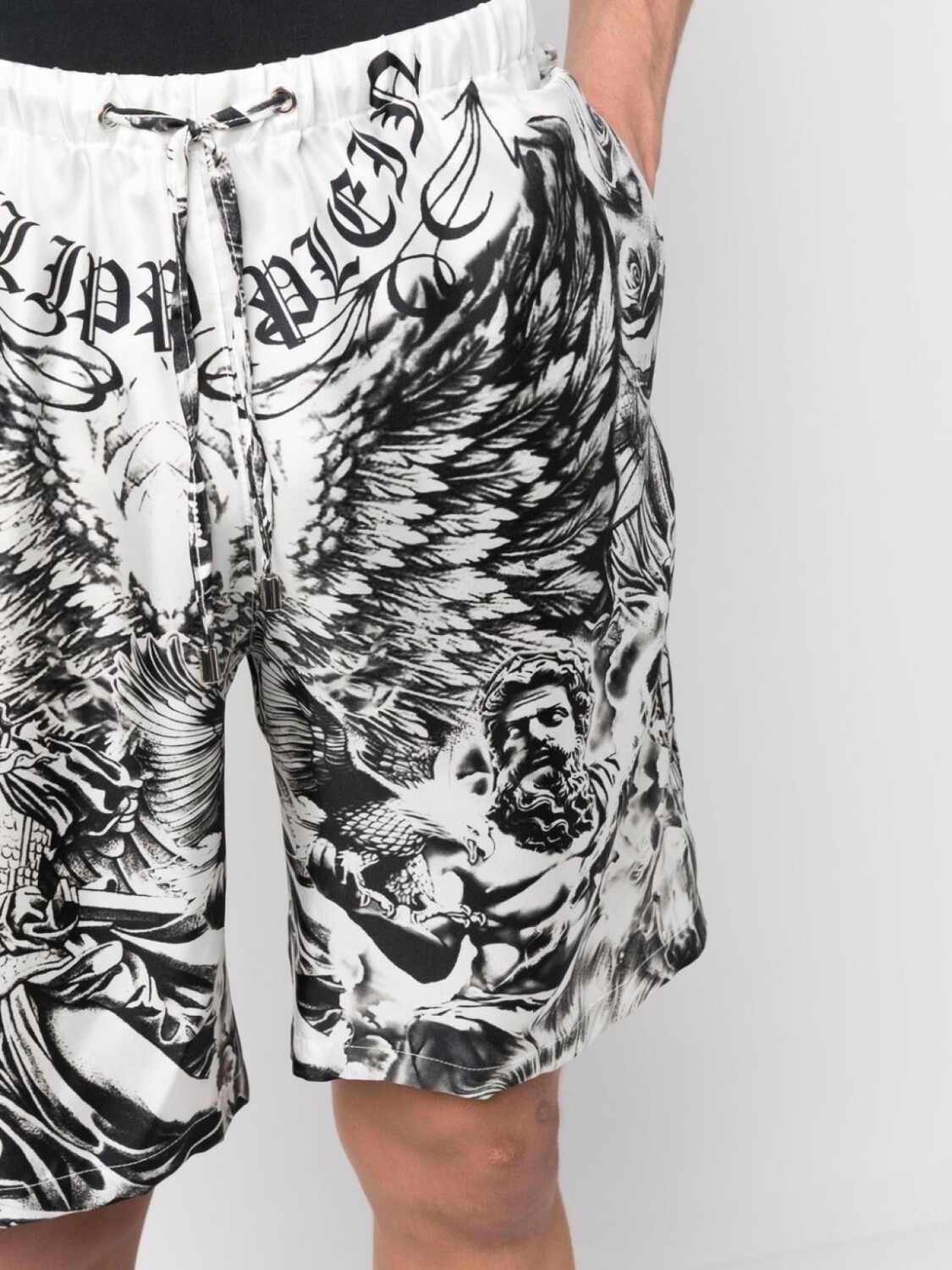 Philipp Plein шелковые шорты с принтом Tattoo, белый
