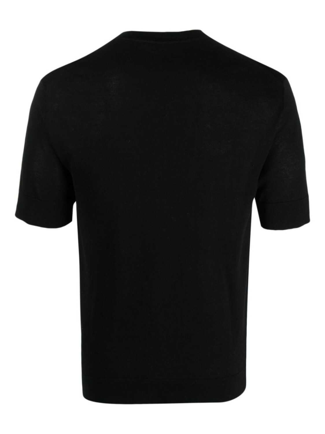 Черный, смесь хлопка и шелка, эластичный хлопок, круглый вырез, короткие рукава и прямой подол.