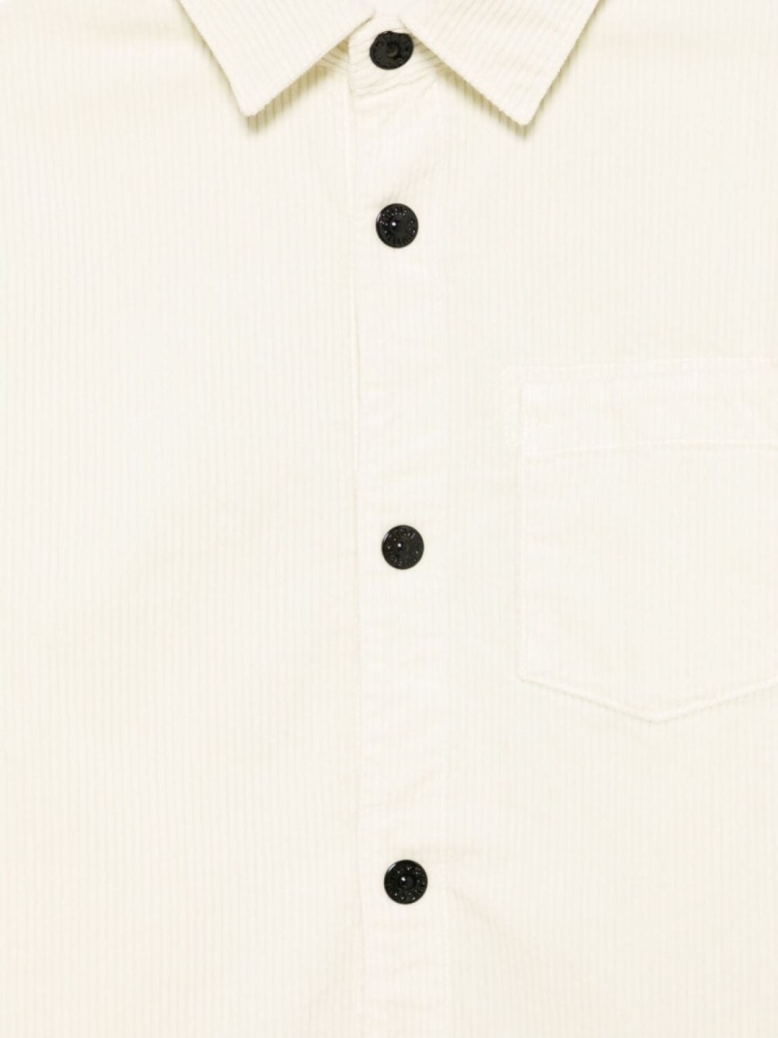Оттенок слоновой кости, смесь хлопка и лиоцелла, вельветовый материал, застежка на кнопках спереди, классический воротник, длинные рукава, съемный значок Compass, манжеты с застежкой на кнопки, нагрудный накладной карман, QR-код, прямой подол