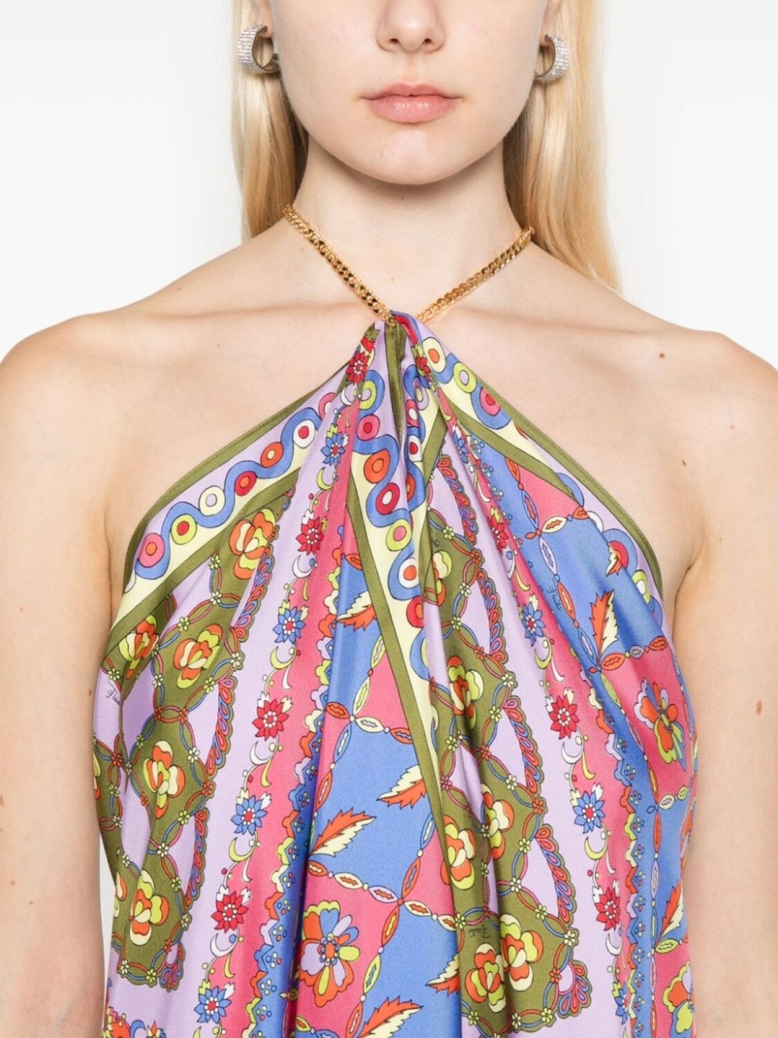 PUCCI шелковое платье миди с принтом Festa, оранжевый