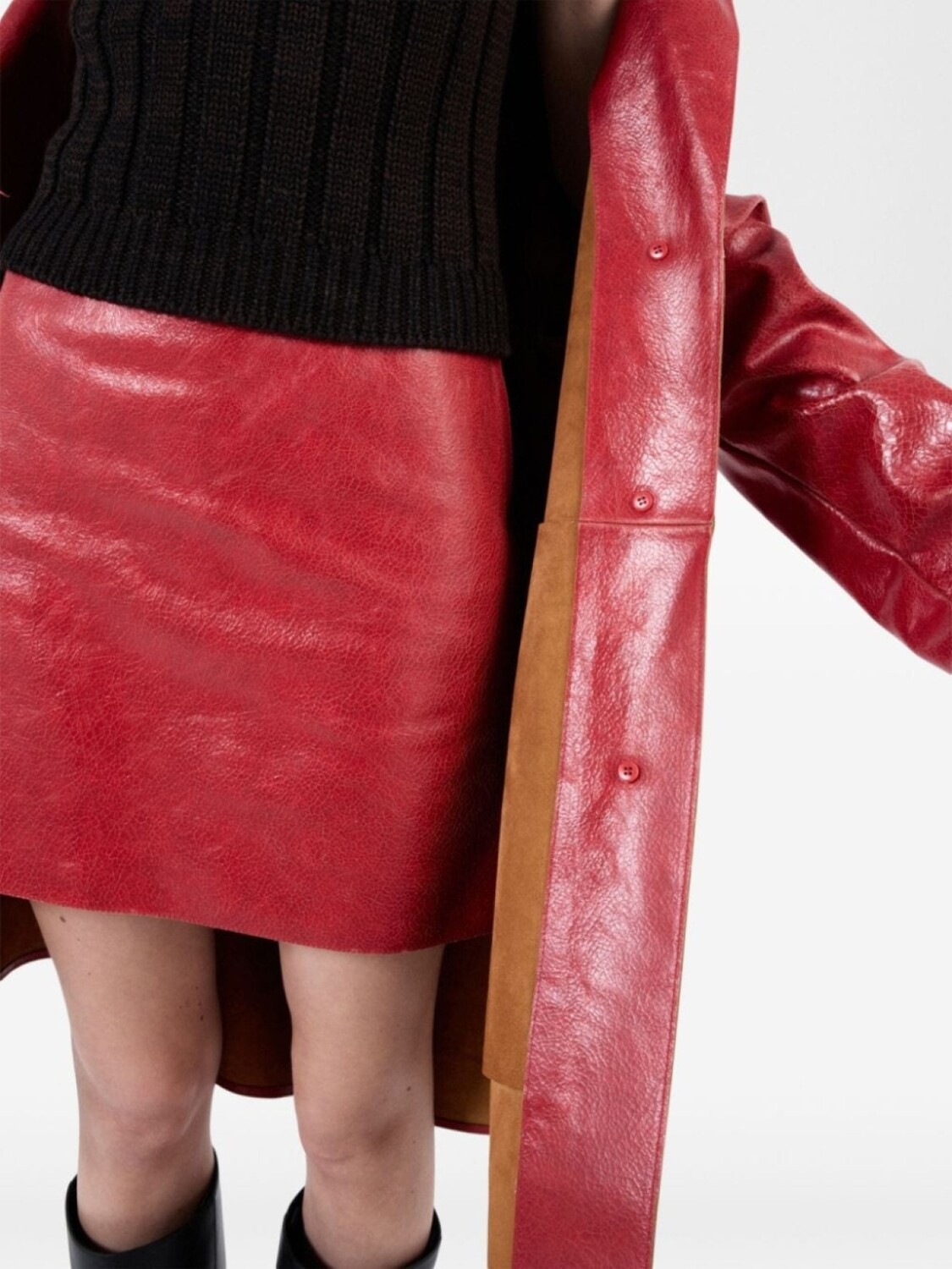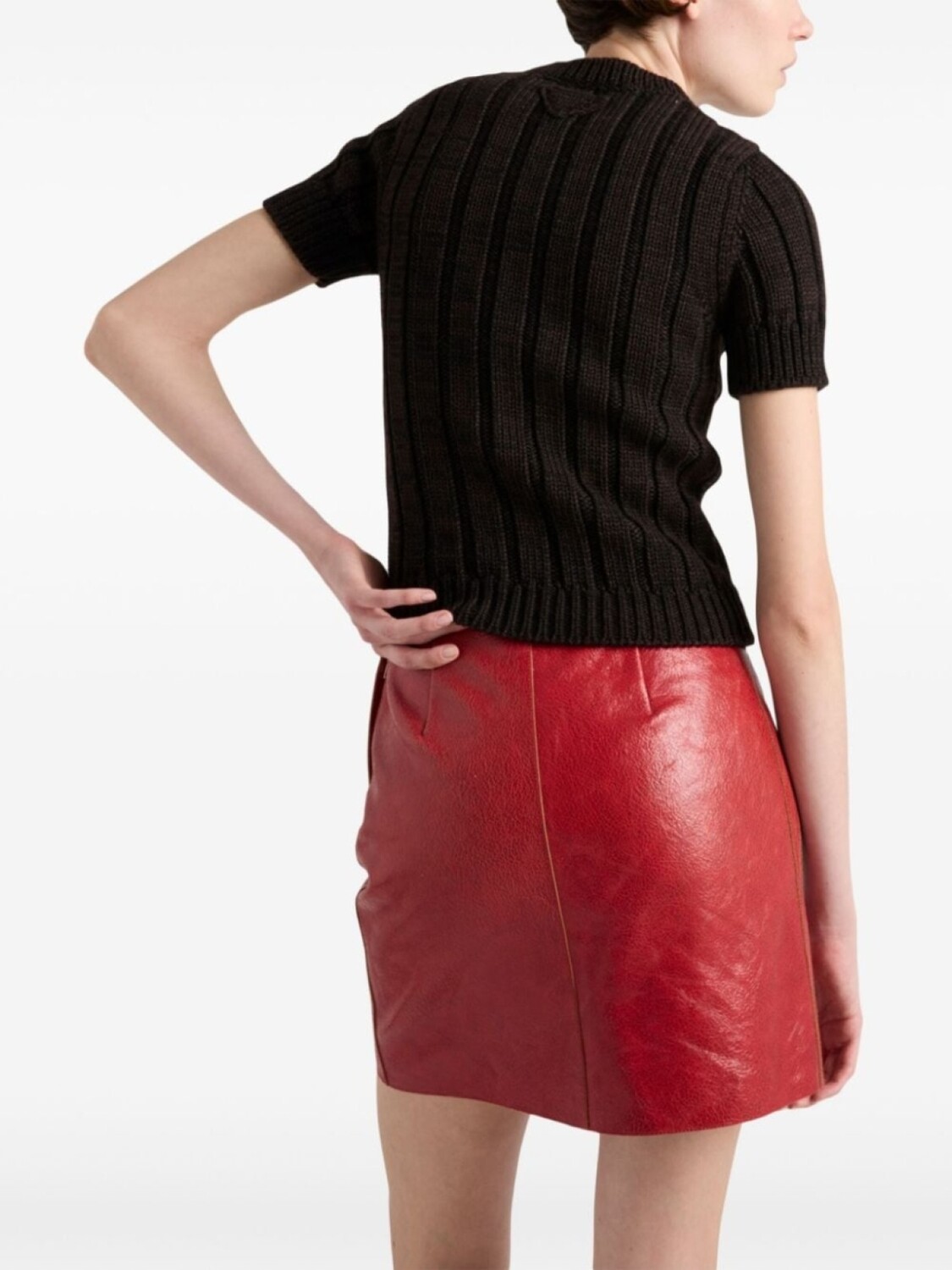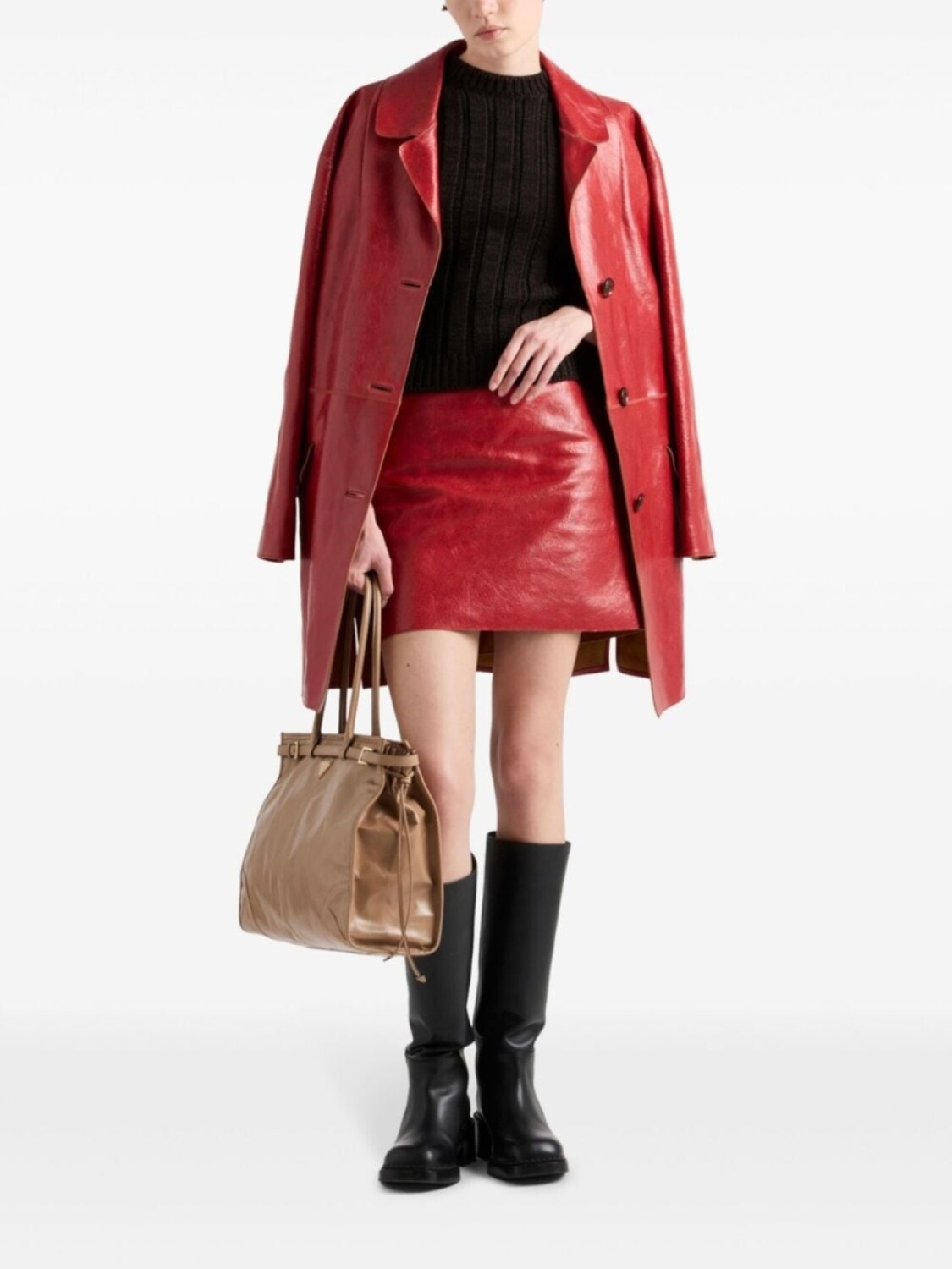 Мини-юбка из кожи с эффектом потрескавшейся кожи Prada, красный